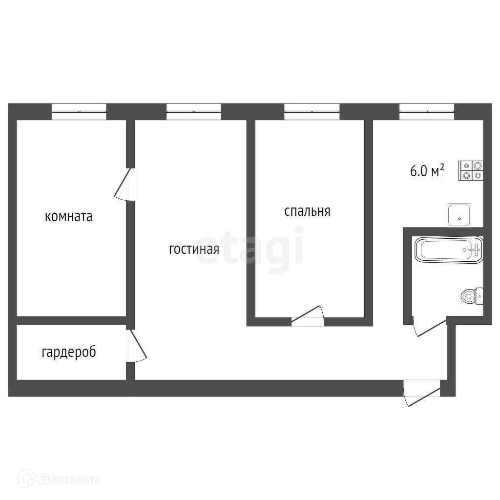 Общая площадь 54 м2
