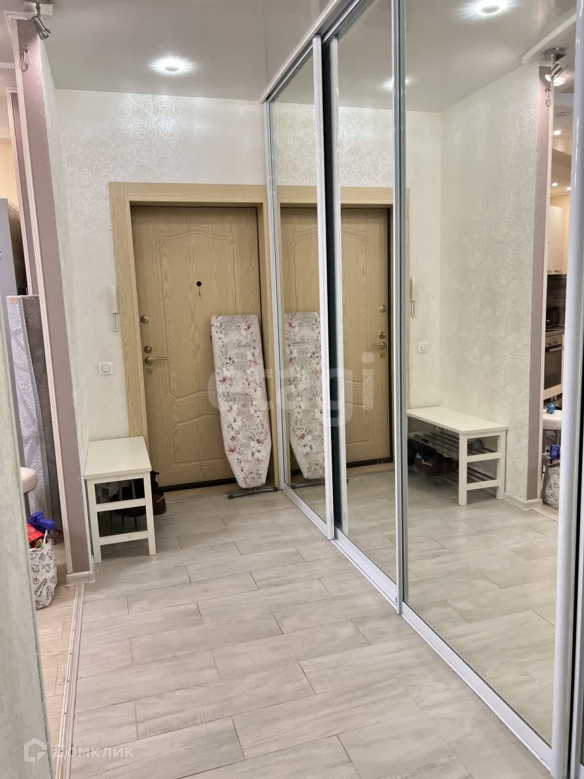 В квартире остается: встроенный шкаф купе в спальне, встроенный шкаф купе по всей длине коридора.
