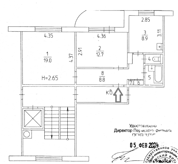 2-комнатная квартира, 55.3 м2, этаж 5 / 9, на продажу в Перми, улица Восстания, 11