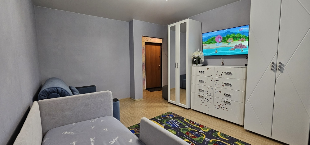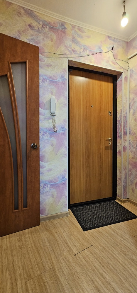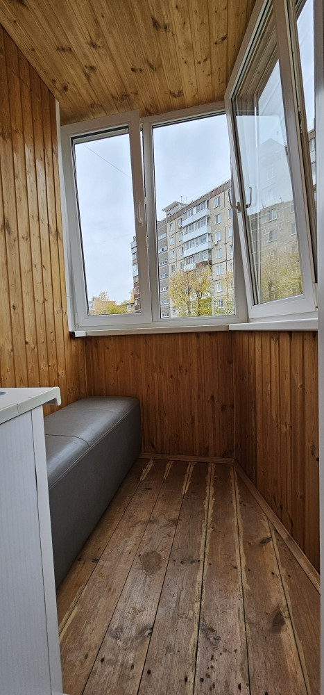 В квартире сделан косметический ремонт (частично поменяна электрическая проводка, новые обои, заменили стеклопакет), на полу ламинат, натяжные потолки, лоджия обшита вагонкой, приборы учета установлены, сантехника заменена.