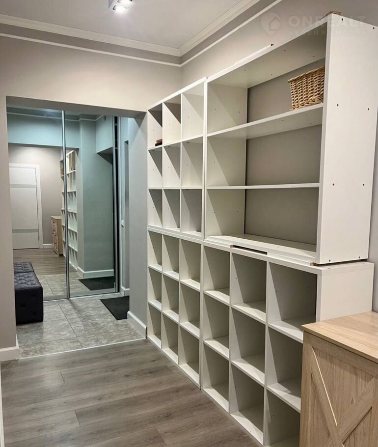 Просторная кухня с гарнитуром созданным по индивидуальному заказу, дизайнерская кровать, универсальные шкафы купе, элегантная прихожая, в том числе кондиционер и водонагреватель в санузле, остается новому владельцу. В квартире есть гардеробная комната.