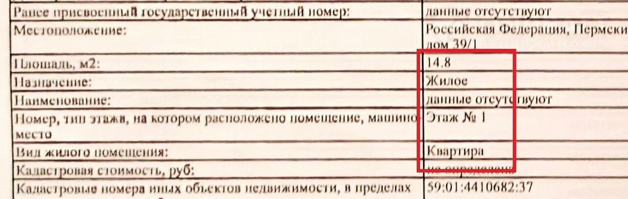 1-комнатная квартира, 15 м2, этаж 1 / 9, на продажу в Перми, проспект Декабристов, 39/1