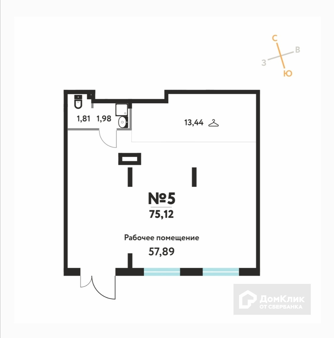 Общая площадь 75.12 м2