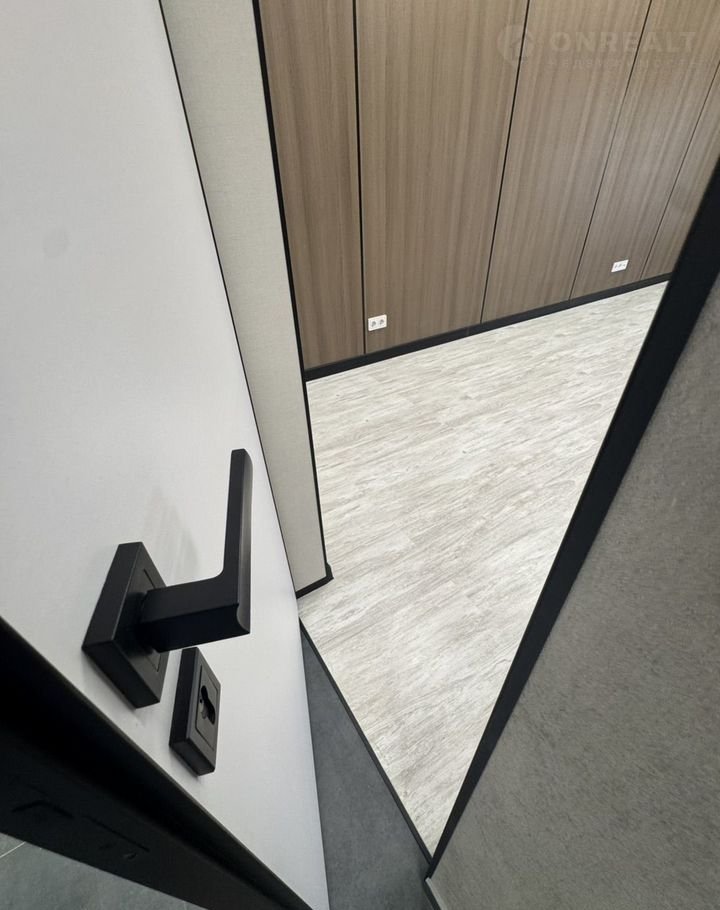 коридор Панель Ласпан-ГК на основе ГКЛ с ПВХ покрытием цвет: белый камень+серый графит; пол: плитка керамогранит