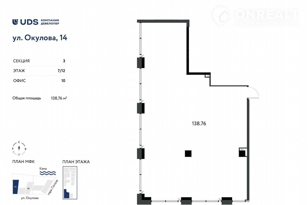 Пoмeщeниe пoд офиc 138 м2 нa 7 этаже МФК Oкуловa 14 от UDS.