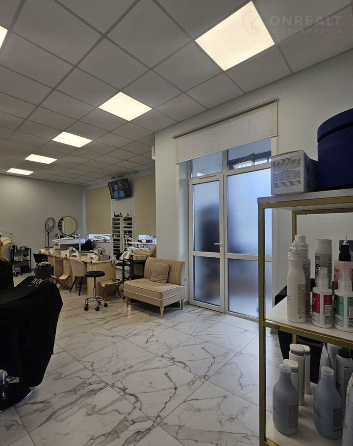 Помещение занимает салон красоты, сделан качественный, модный ремонт.
