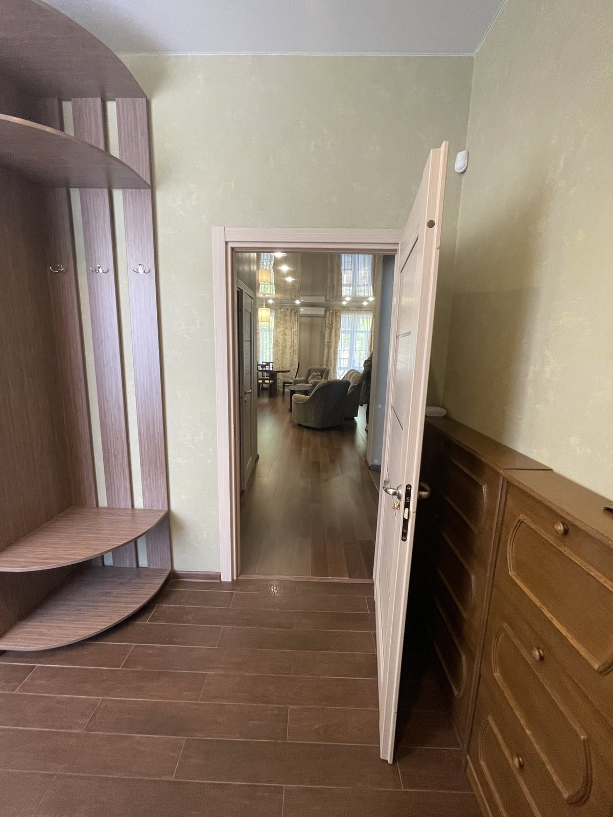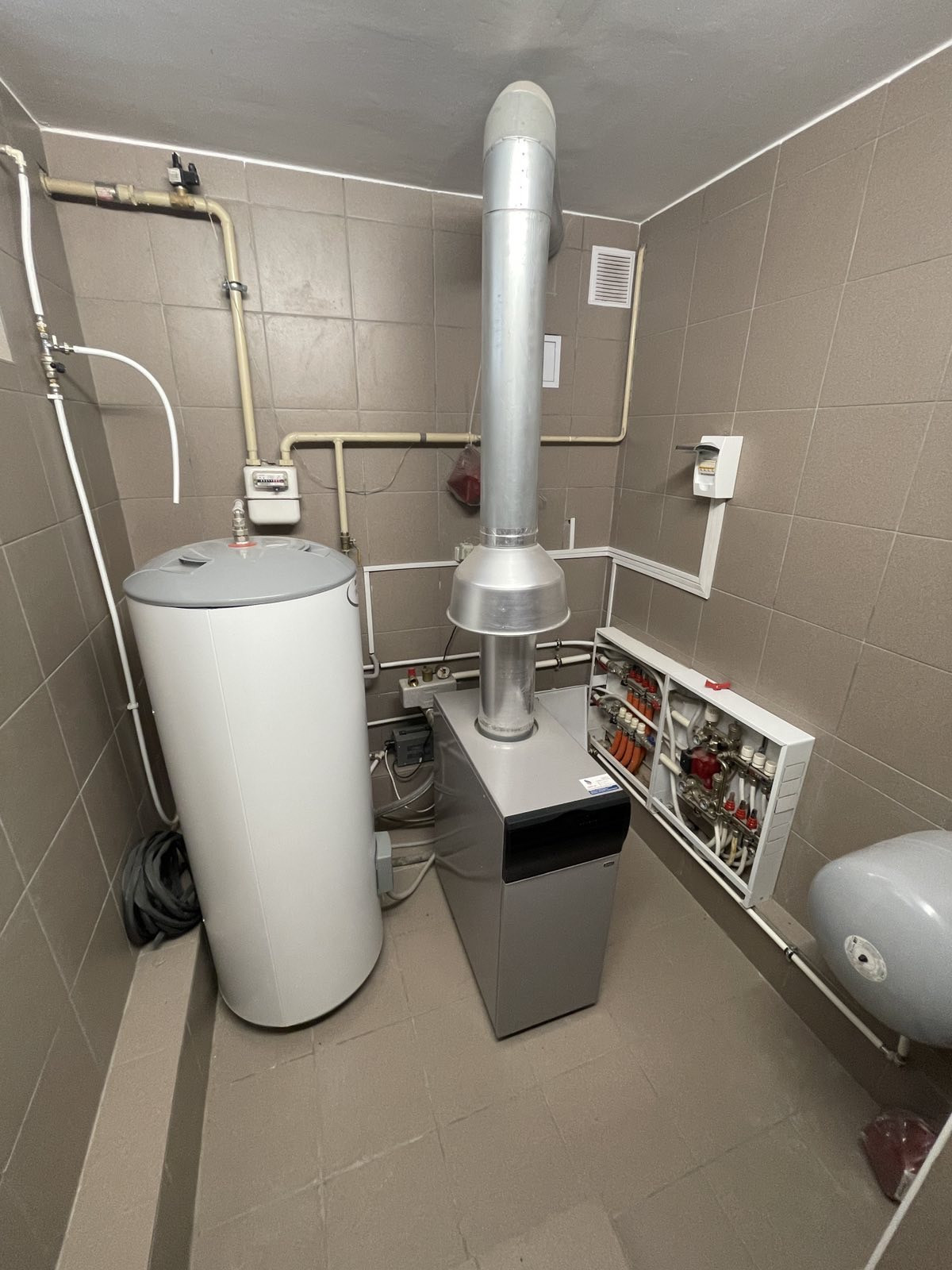 Свой двухконтурный газовый котёл, центральные коммуникации(водоснабжение, канализация, газоснабжение). Два выхода- центральный и задний дворик.