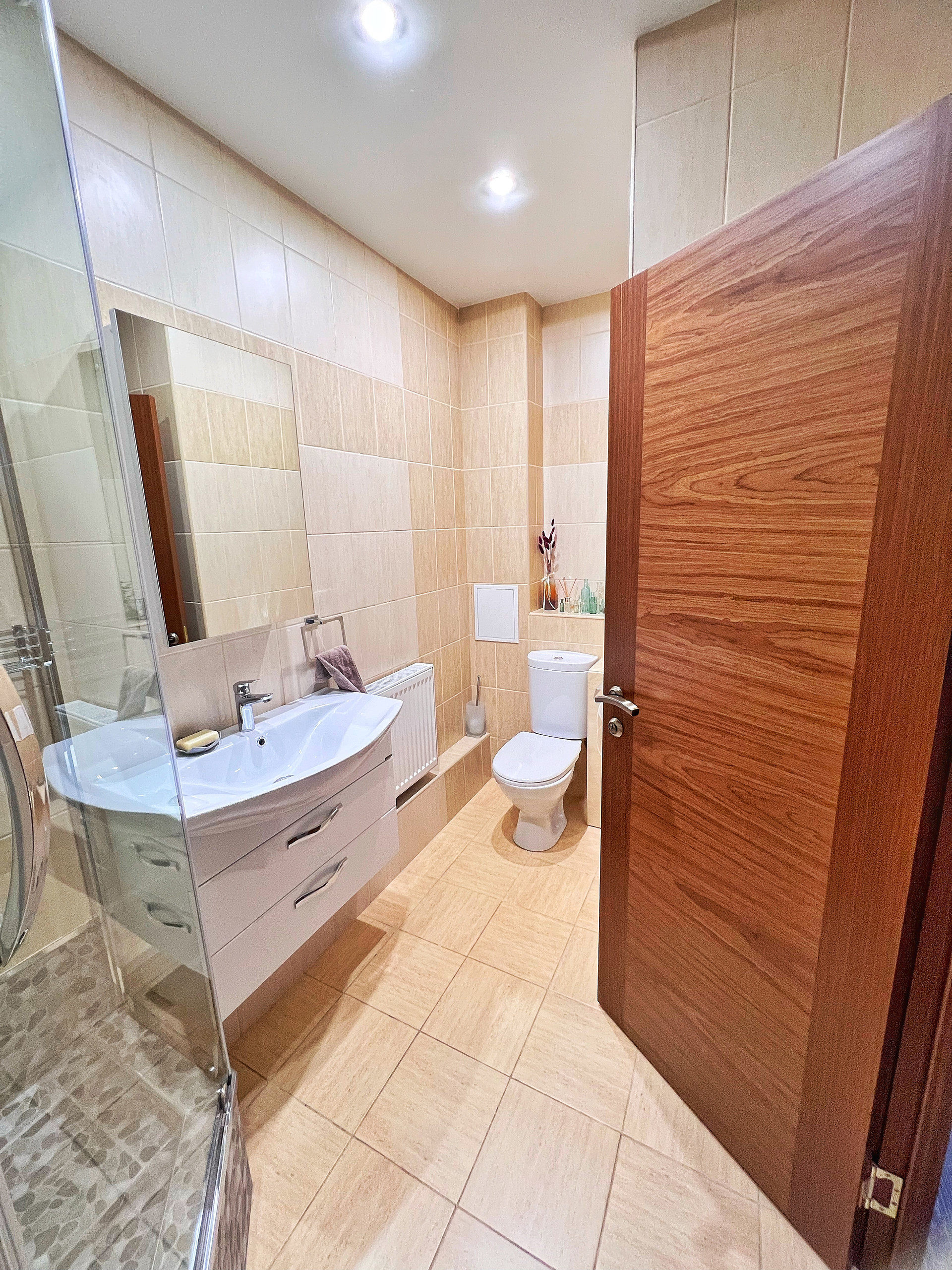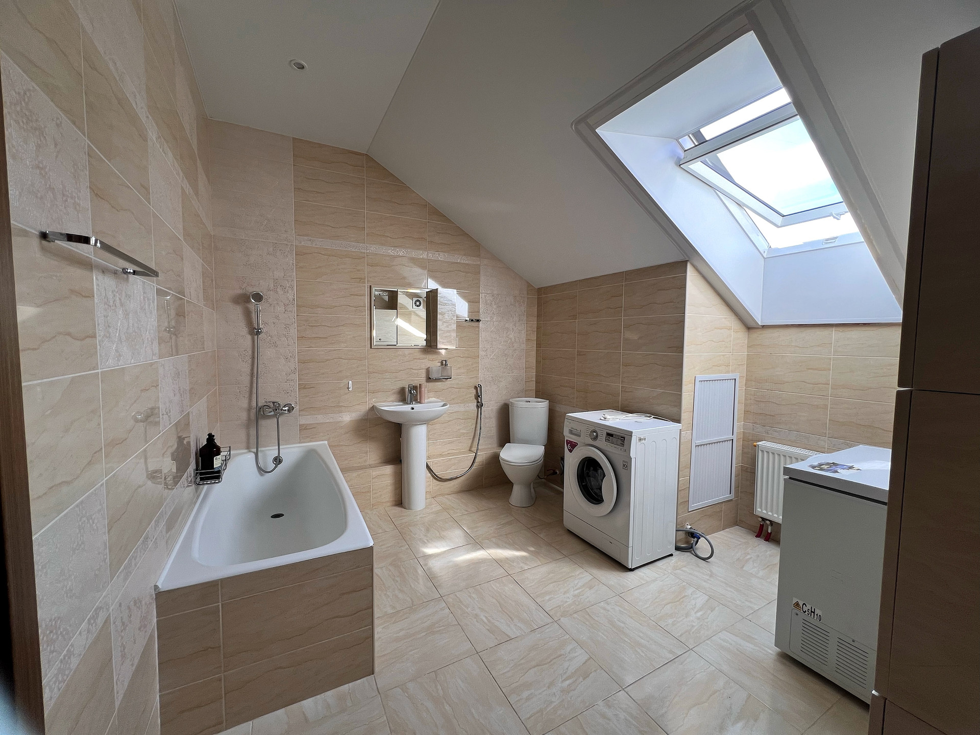 •САНУЗЛЫ: расположены на 1 и 3 этажах, совмещенные. На 1 этаже – новая душевая кабина, большая раковина со шкафчиком и зеркалом, унитаз. На 3 этаже – просторная ванная комната с мансардным окном (раковина с зеркалом и шкафчиком, отдельный шкаф, унитаз, стиральная машина). В каждом санузле теплые электрические полы с регулятором температуры. Есть техническая возможность при необходимости установить санузел на 2 этаже.