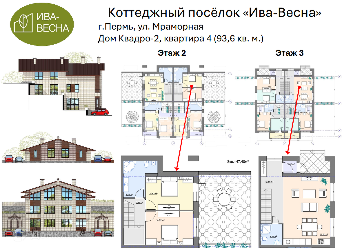 3-этажный таунхаус, 93.6 м2, на продажу в Перми, Мраморная улица, 3К
