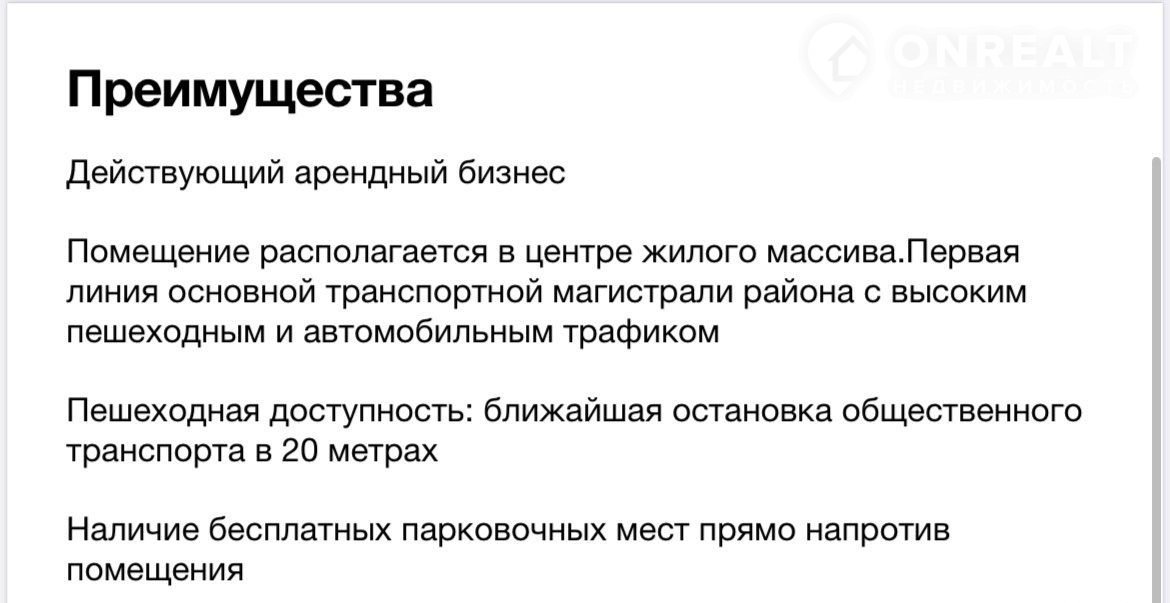 Помещение располагается в центре жилого массива(в радиусе 500 метров более 4920 квартир).Первая линия основной транспортной магистрали района с высоким пешеходным и автомобильным трафиком. Пешеходная доступность: ближайшая остановка общественного транспорта в 20 метрах.