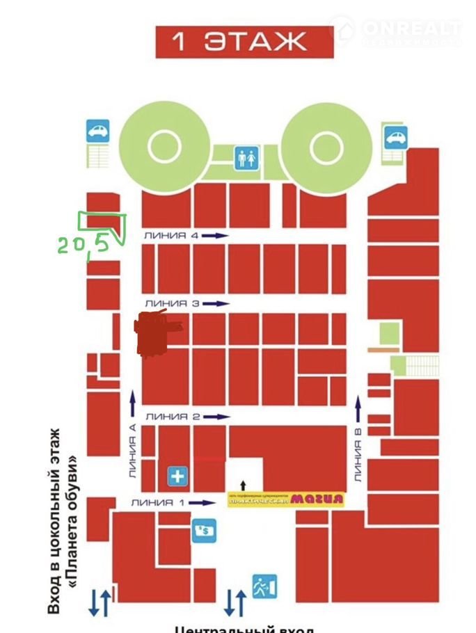 Ширина - 175 см. Площадь расположена на пересечении линий А/4. Стоит долгосрочный арендатор, аренда в месяц