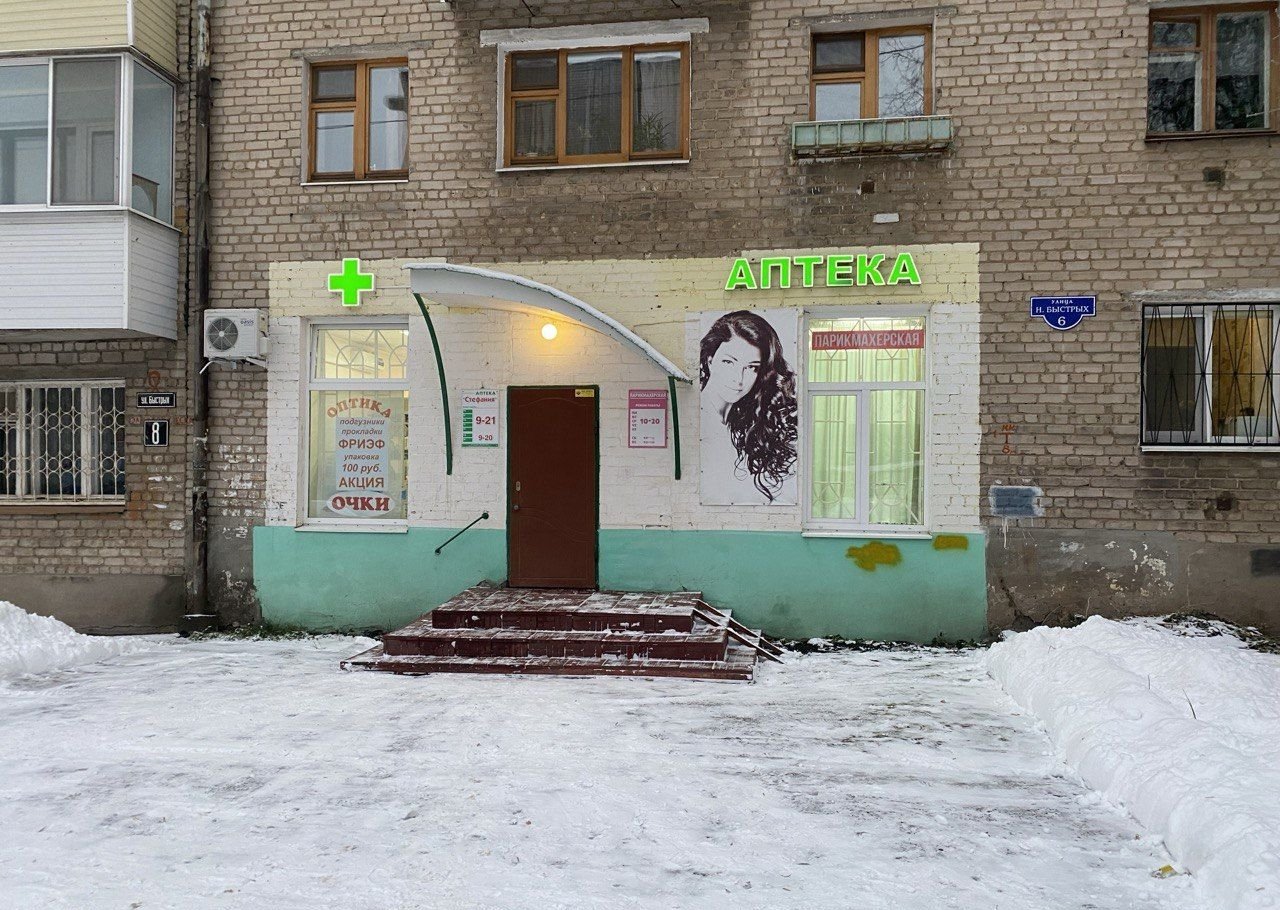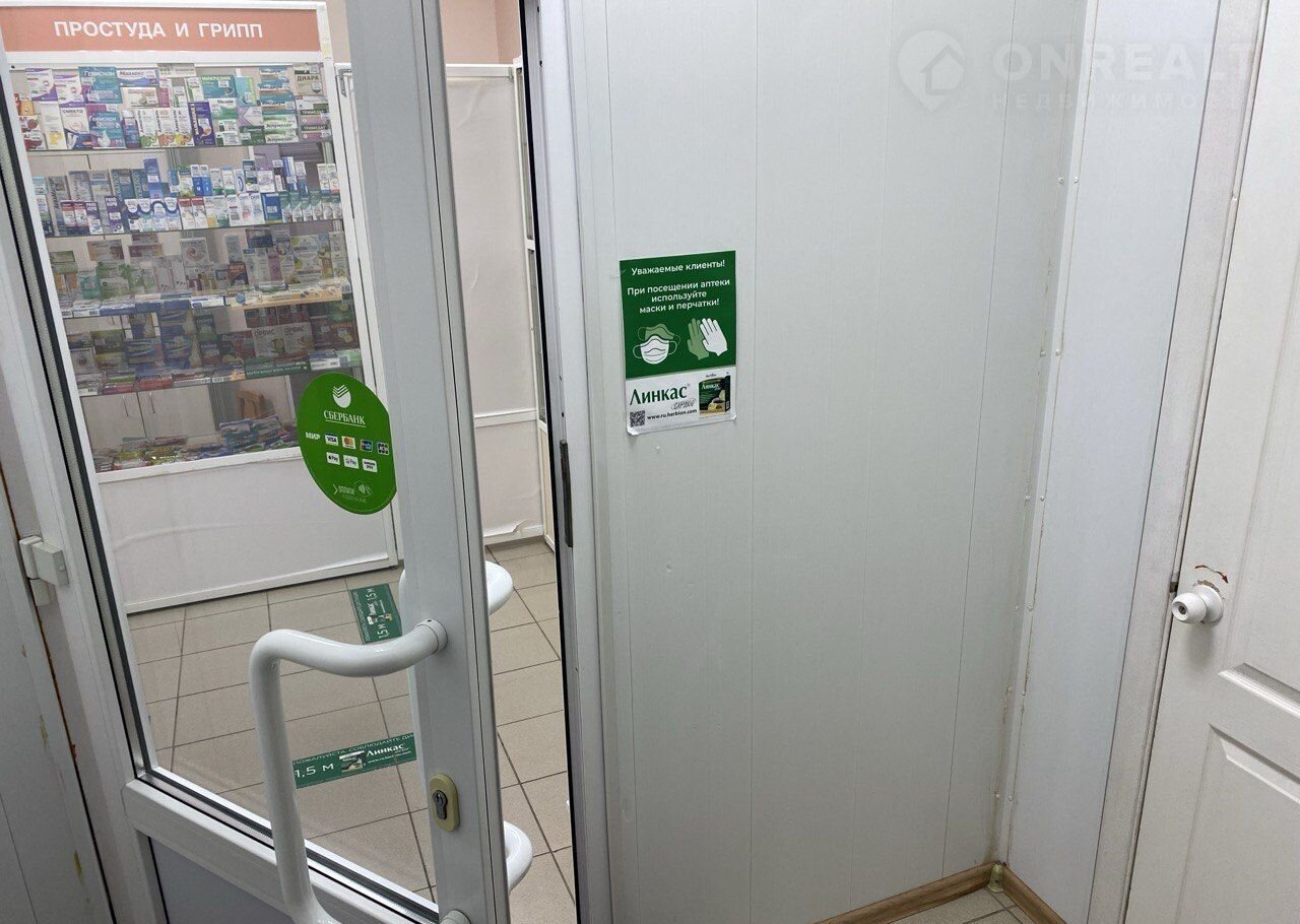 В помещении работают аптека / 56 кв.м / и парикмахерская / 15 кв. м /. Общий тамбур / 2 кв.м /.Все оборудование и аптеки и парикмахерской входит в стоимость. Площади оборудованы сигнализацией и кондиционером. Состояние помещений хорошее, возможна эксплуатация без ремонта.