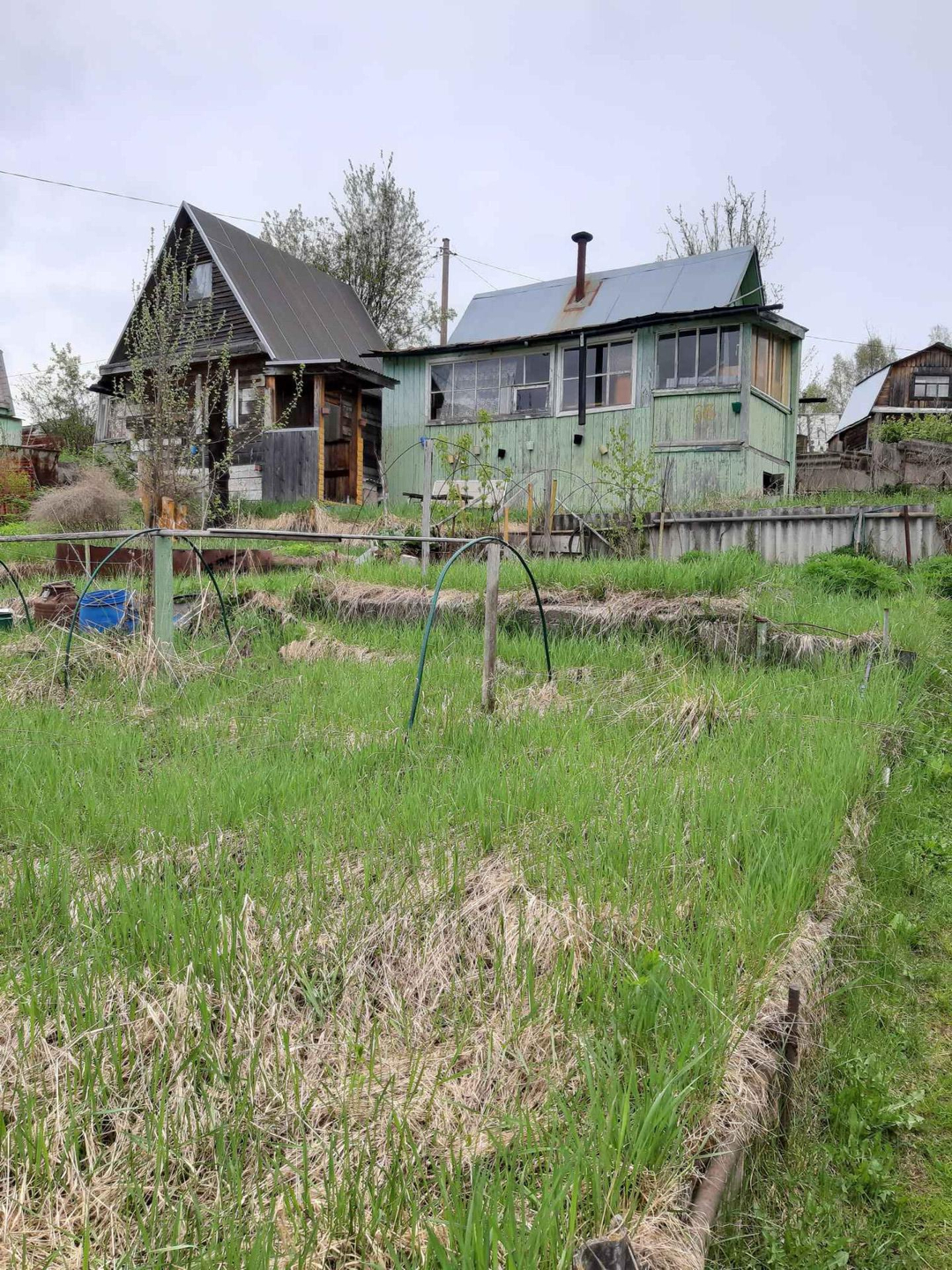 Продам дачу на Гайве в СНТ 36, вся инфраструктура в шаговой доступности. В СНТ свой пруд, участок солнечный, сухой, уклон совсем небольшой. На участке два дачных домика: один старый, но крепкий из бревна с печкой и верандой; второй новый из бруса с мансардой, летний водопровод, туалет, яма требующая ремонта, из посадок две яблони, одна под окном нового дома, ирга, калина, малина.