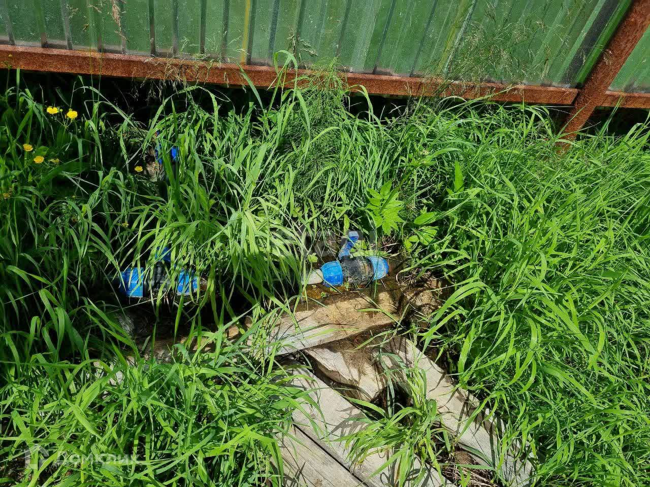 Территория участка огорожена профнастилом, что обеспечивает безопасность и уединение. Для удобства жизни есть летний водопровод и своя скважина с насосом.