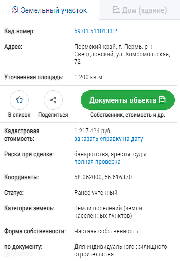 Участок под ИЖС, 12 сот. на продажу в Перми, Комсомольская улица, 74