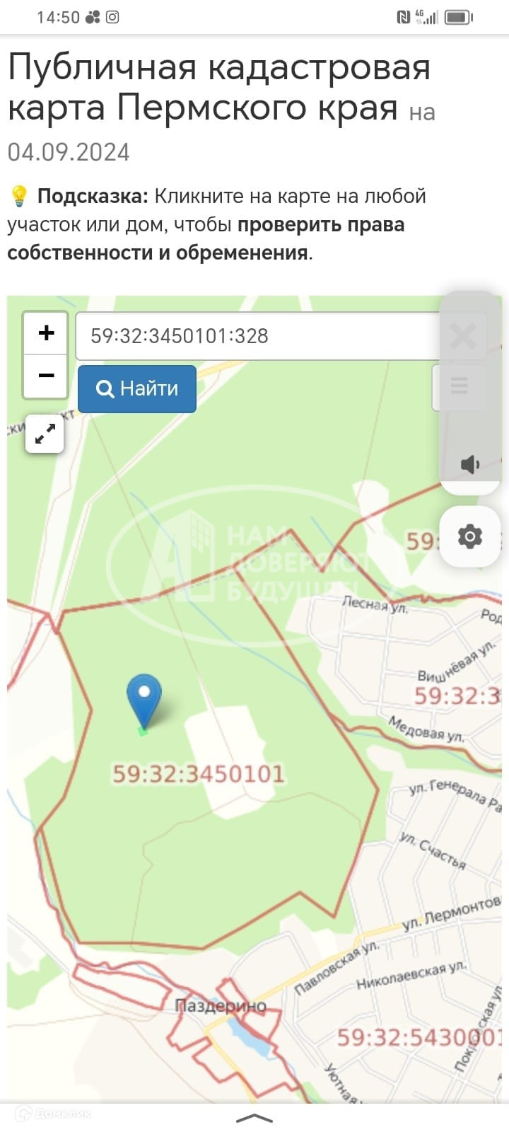 Земельный участок общей площадью 0.4 га , размежеван на 4 участка. Месторасположение район города Перми- п.Соболи. Новый коттеджный посёлок. Отсыпана гравийная дорога. Есть возможность подключения коммуникаций. Район города. Кадастровый номер: 52:32:3450101:327, 54:34: 50101:328 59:32:3450101:339 59:32:3450101:340
