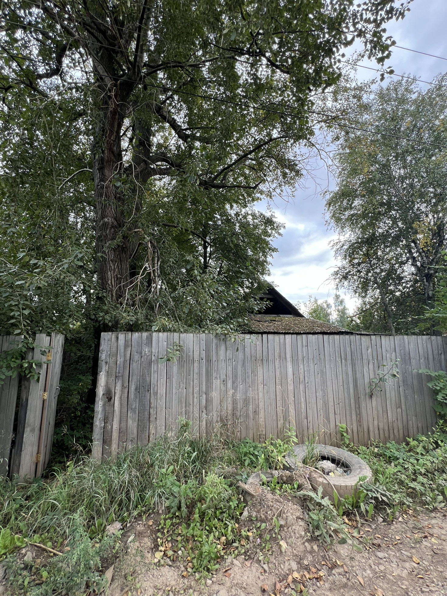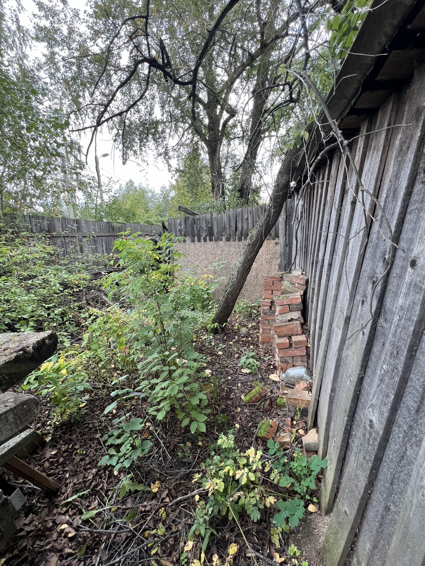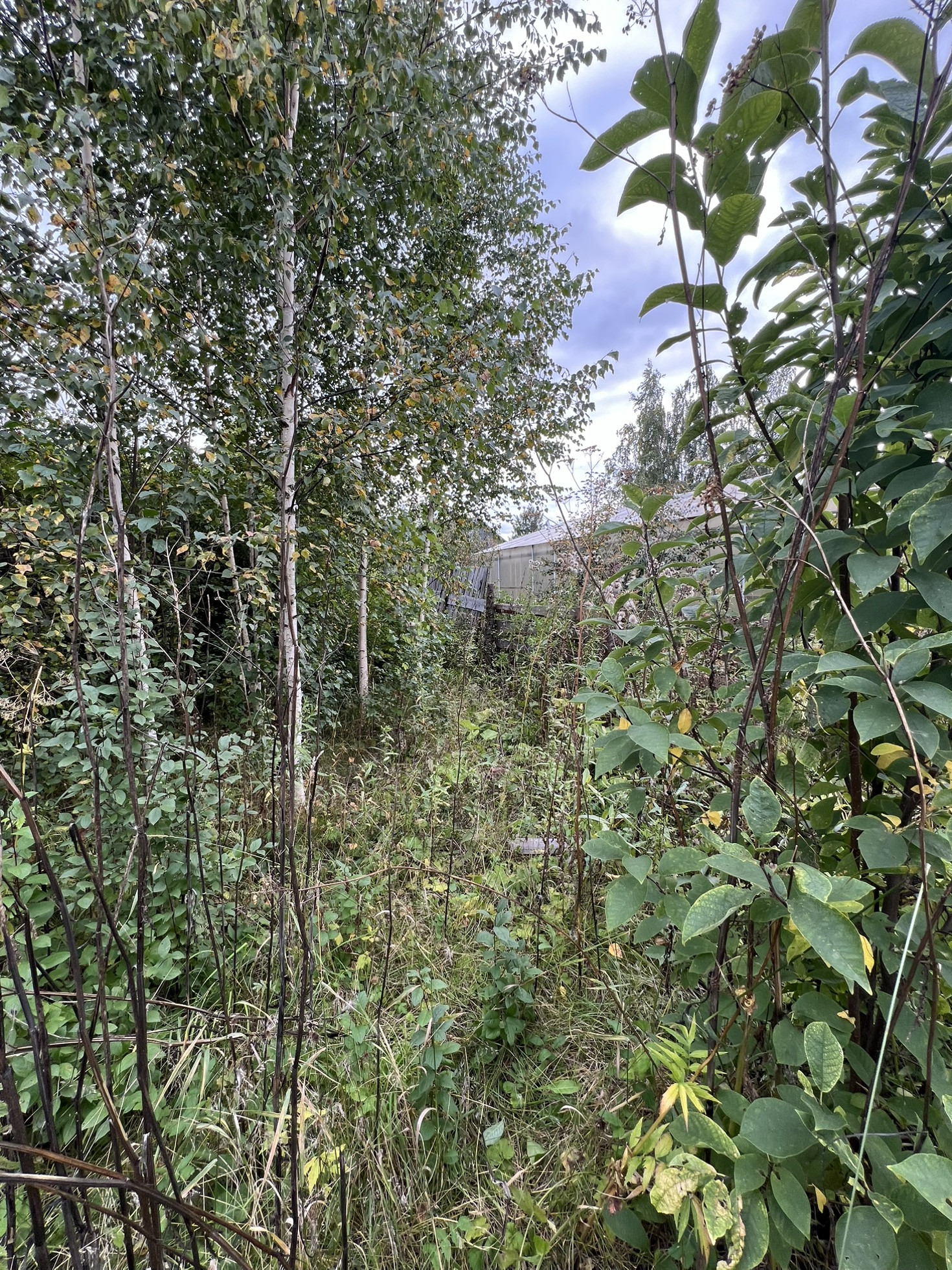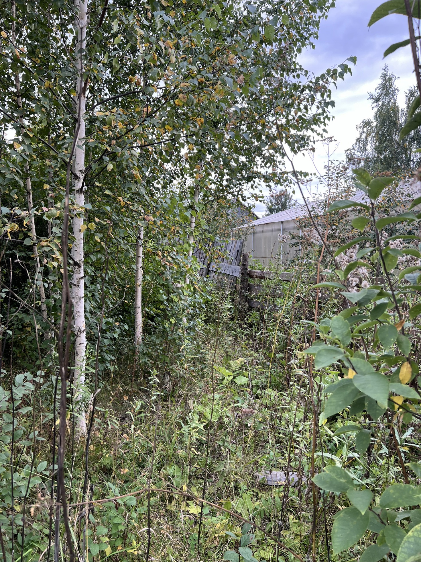По границе участка идет забор.