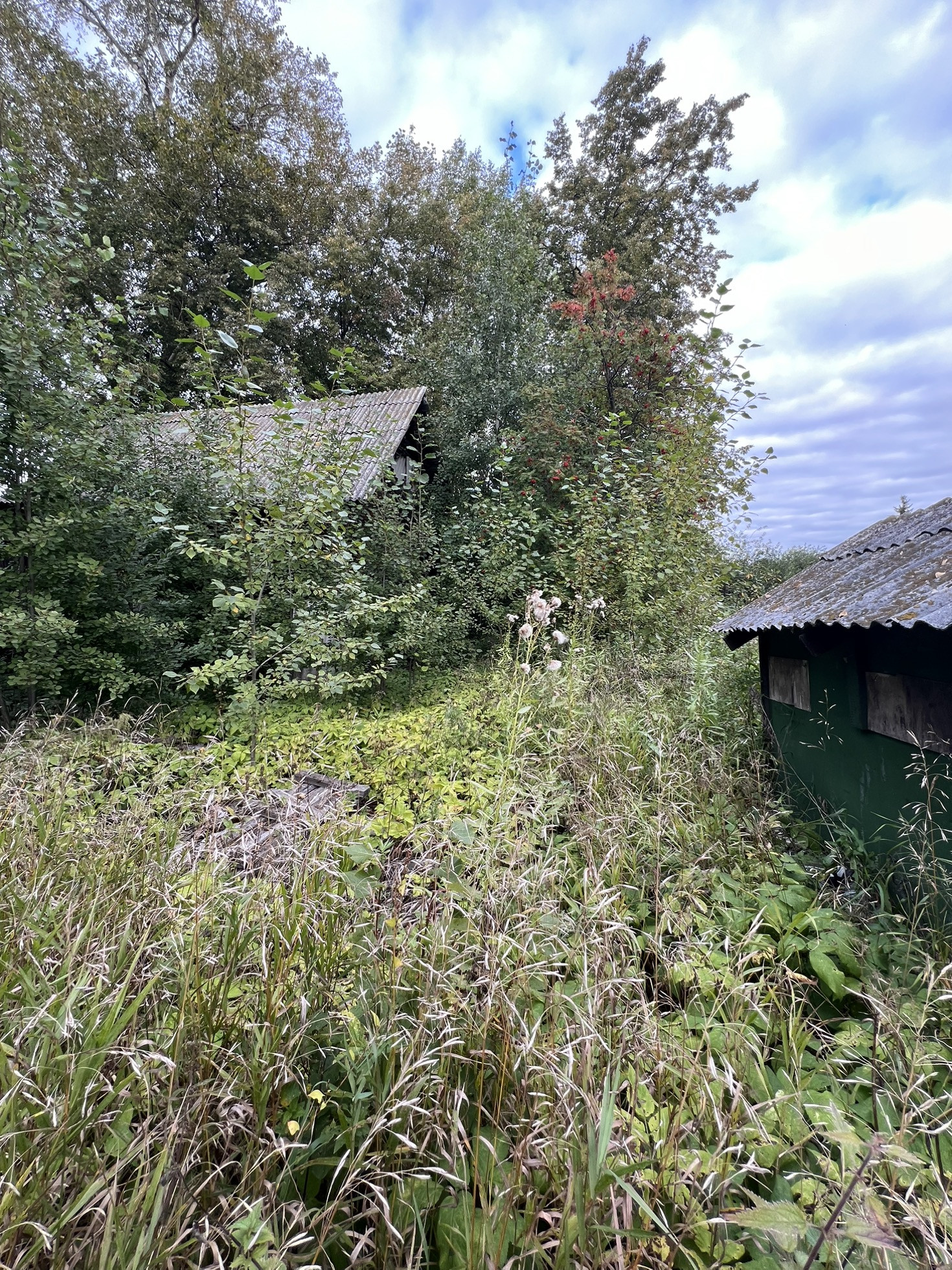 Из посадок есть - 2 яблони, крыжовник, черная, белая и красная смородина, сортовая малина, ирга, облепиха, вишня, клубника. Все деревья и ягоды сортовые.