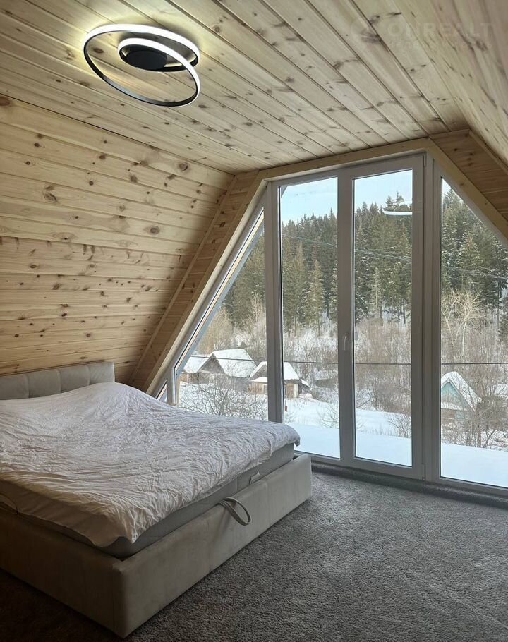 — мастер-спальня с большим панорамным окном и невероятным видом
