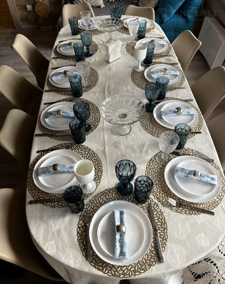 - Скатерть, сервированные салфетки