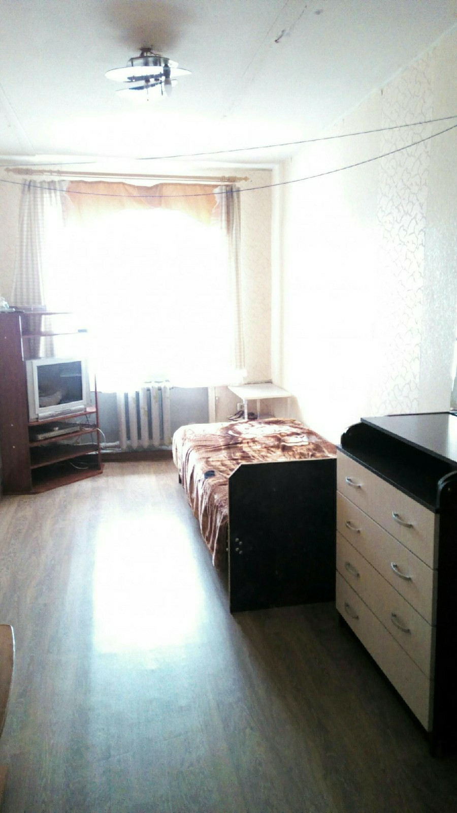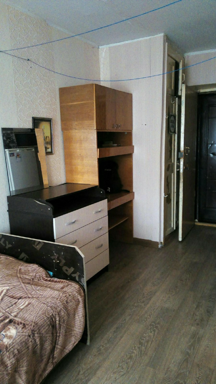 В комнате есть холодильник, телевизор, шкаф, стол, кровать (1-спальная),  гардероб. На кухне свой рабочий стол. Комната тёплая, стоит стеклопакет, две двери. Проводится дежурство.