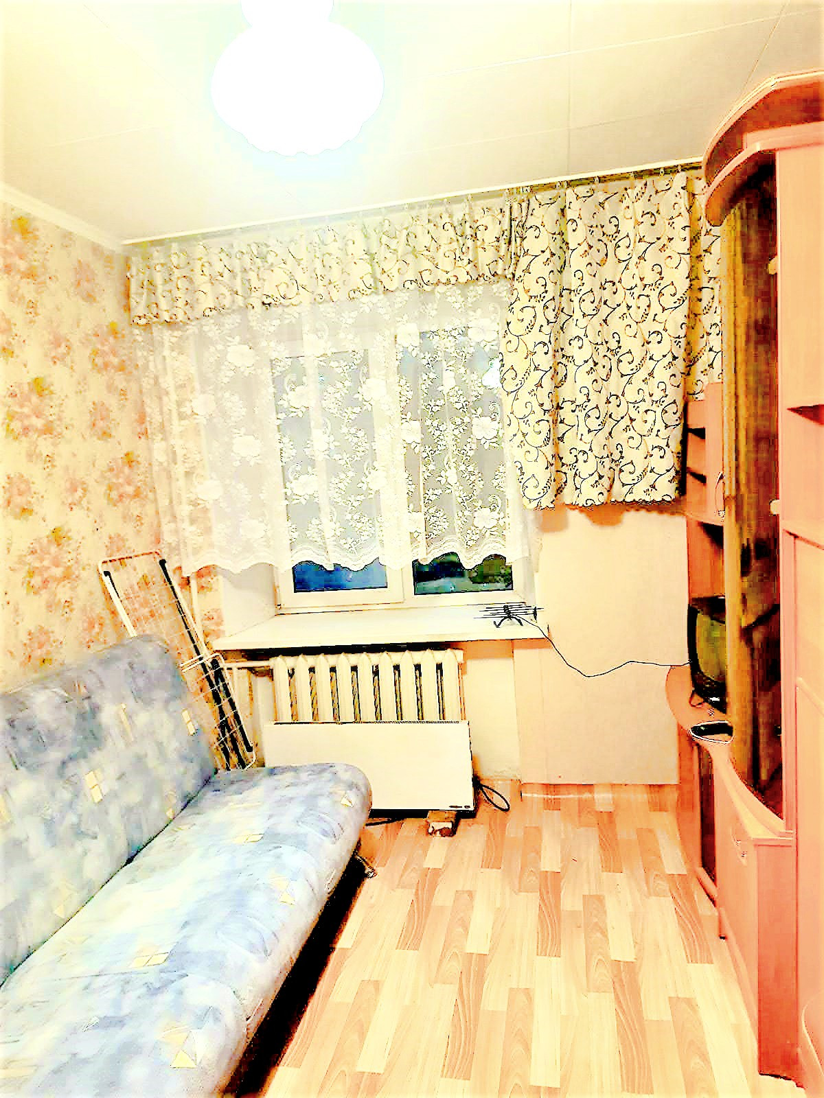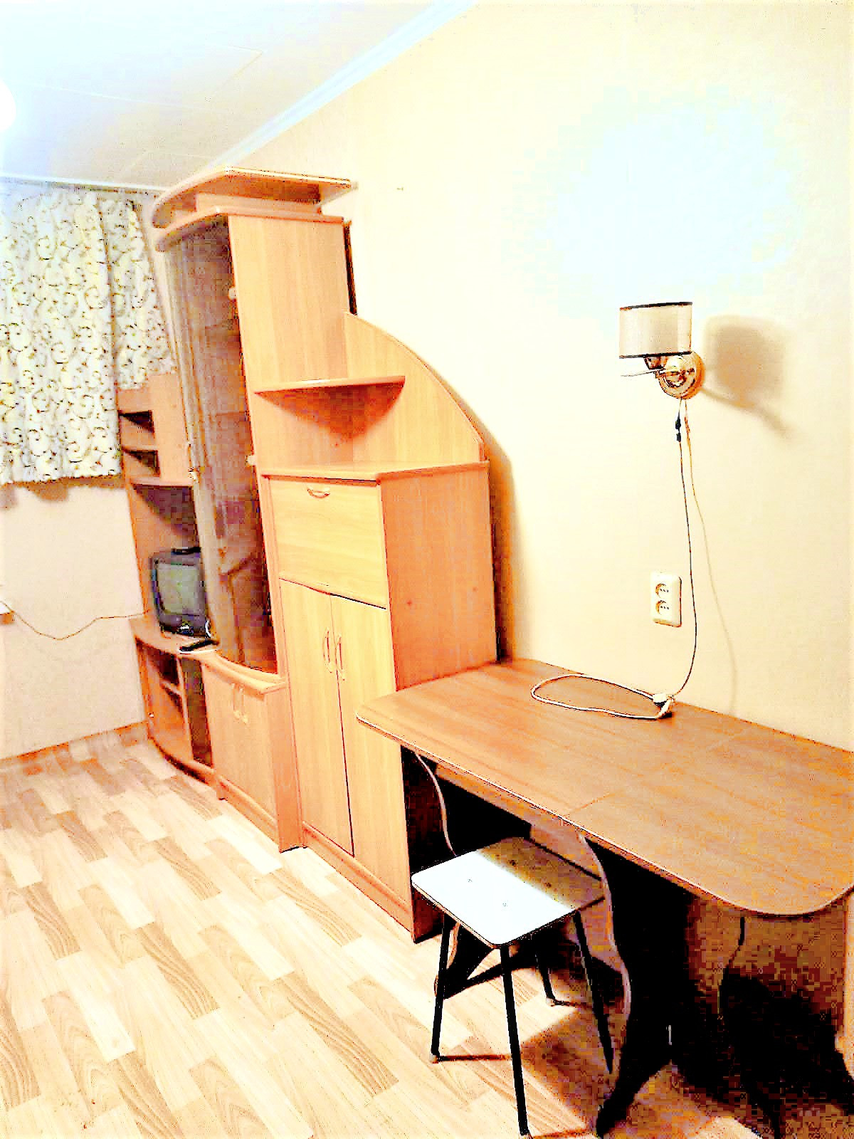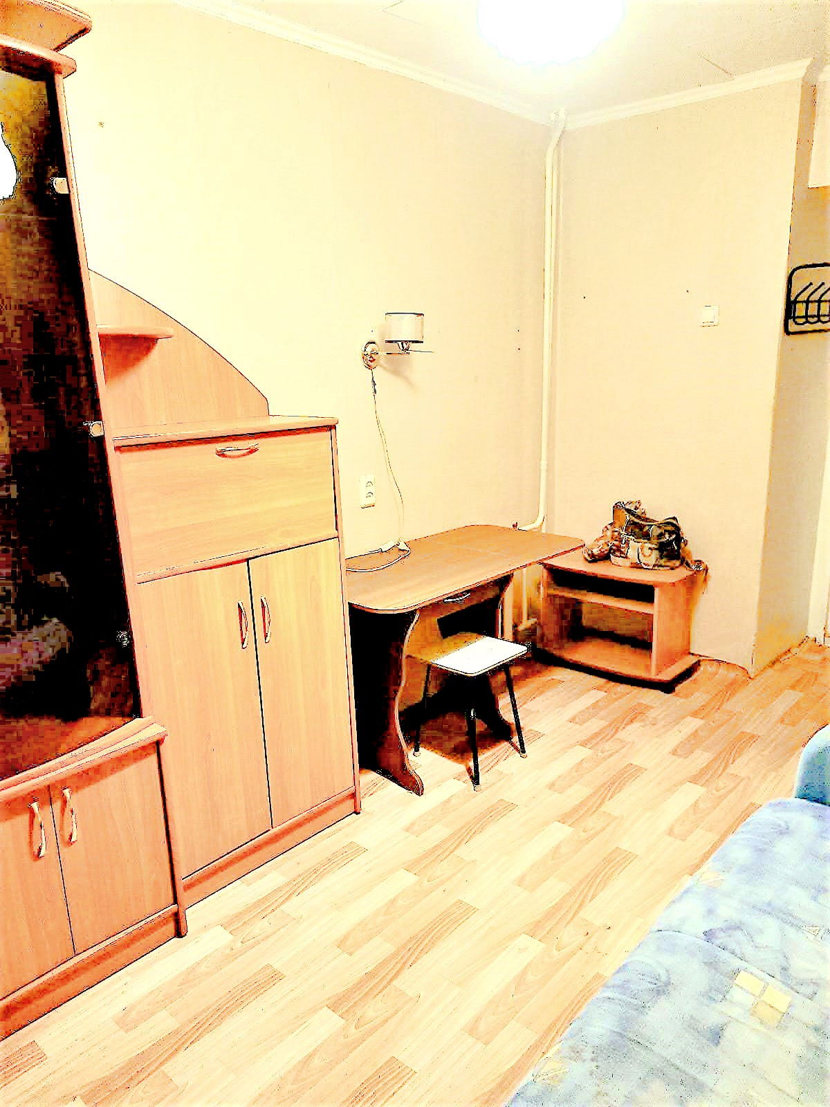 Уютная комната в общежитии блочного типа, места общего пользования в хорошем состоянии, соседи благополучные. Комната меблирована и оснащена бытовой техникой: диван, стол, тумба, кухонные шкафы, шкаф в прихожей, холодильник, стиральная машина-автомат. Коммунальные услуги включены