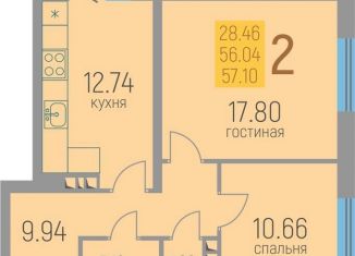 Сдается в аренду 2-комнатная квартира, 57.1 м2, Переселенческая улица, 98