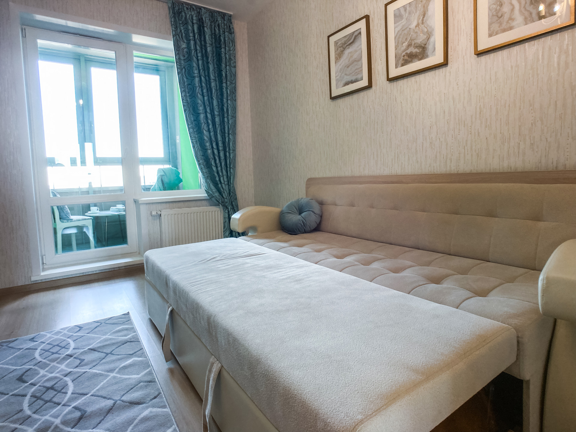 Спальных мест 5: двуспальная кровать в спальне, двуспальный диван в гостиной и односпальный диван на кухне