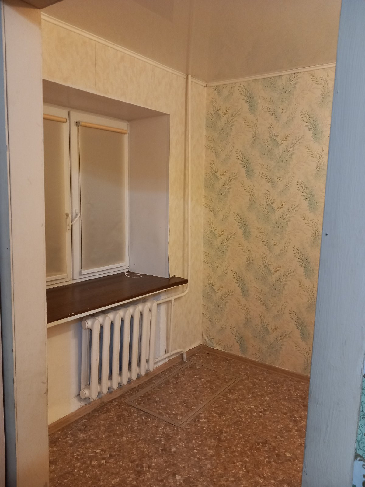 Из мебели- большой встроенный шкаф, небольшая кухня, плита.