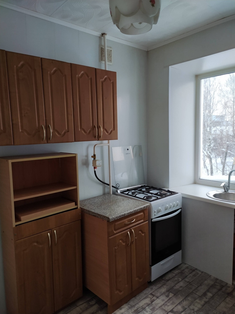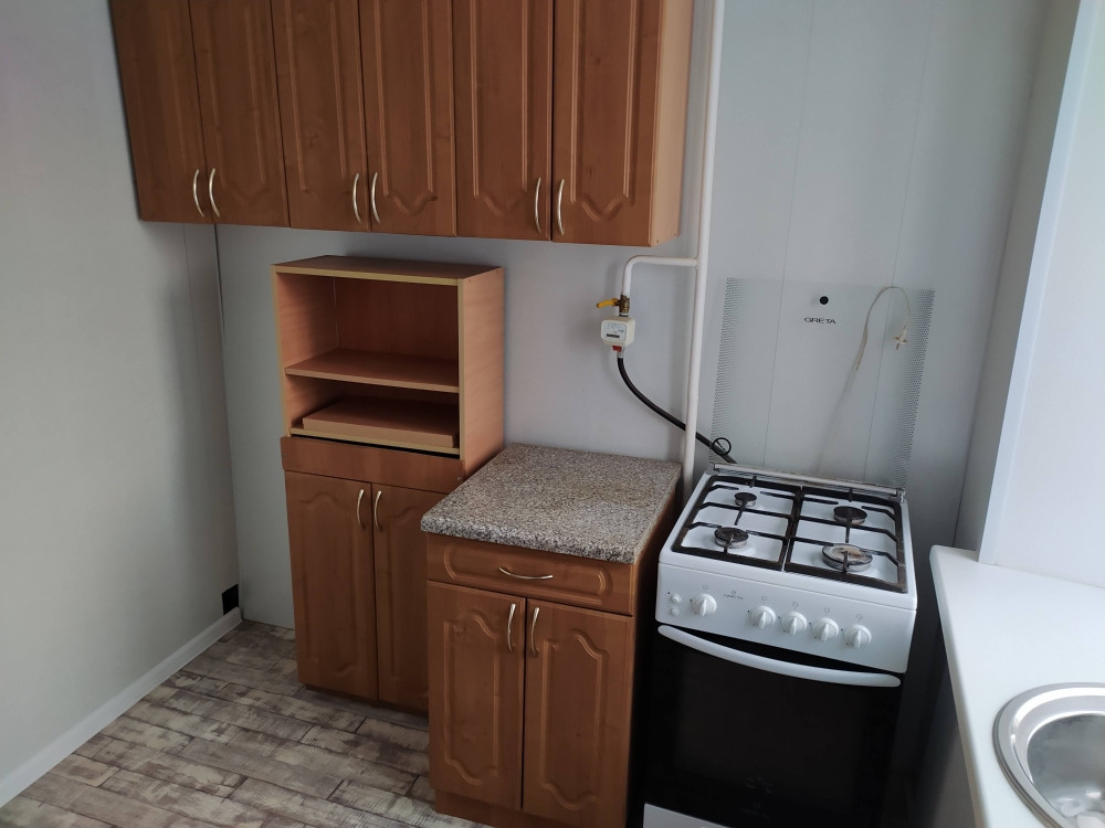 В квартире на окнах стеклопакеты, сделан косметический ремонт. На данный момент из мебели диван, тумба под ТВ, комод, кухонный гарнитур, кухонный стол, холодильник, газовая плита.