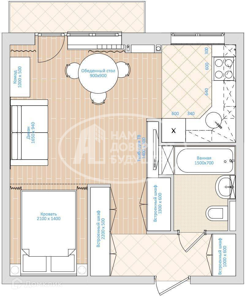 Общая площадь 36 м2