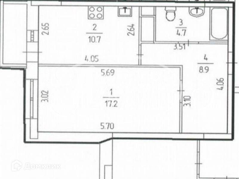 Общая площадь 43 м2