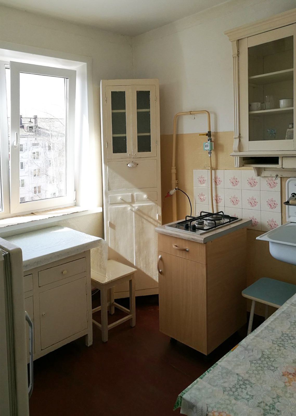 Есть вся необходимая мебелью СССР: холодильник, двуспальная кровать, стиральная машина, телевизор, утюг, гладильная доска.
