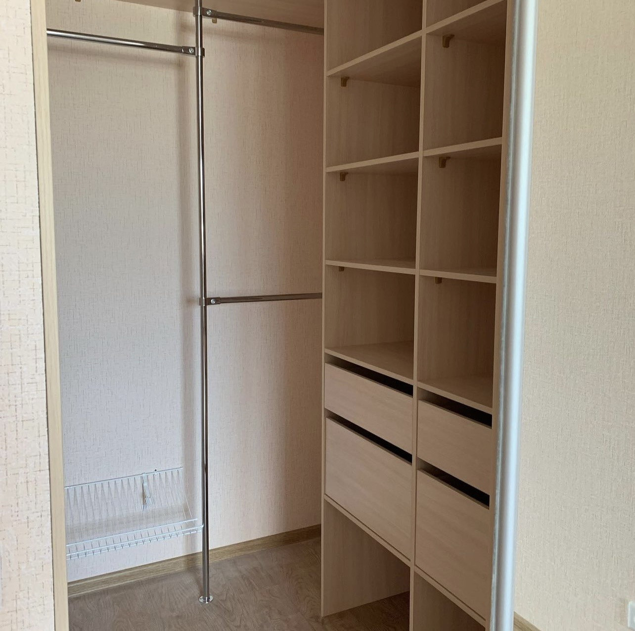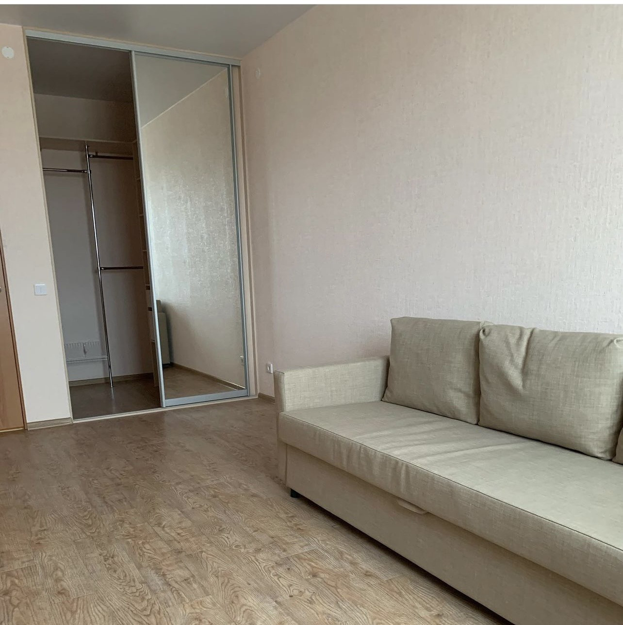 Сделана просторная и очень вместительная гардеробная в комнате. В квартире имеется все, для комфортного проживания - кухня, электроплита, холодильник, стиральная машина, двухспальный диван, кухонный стол и стулья.