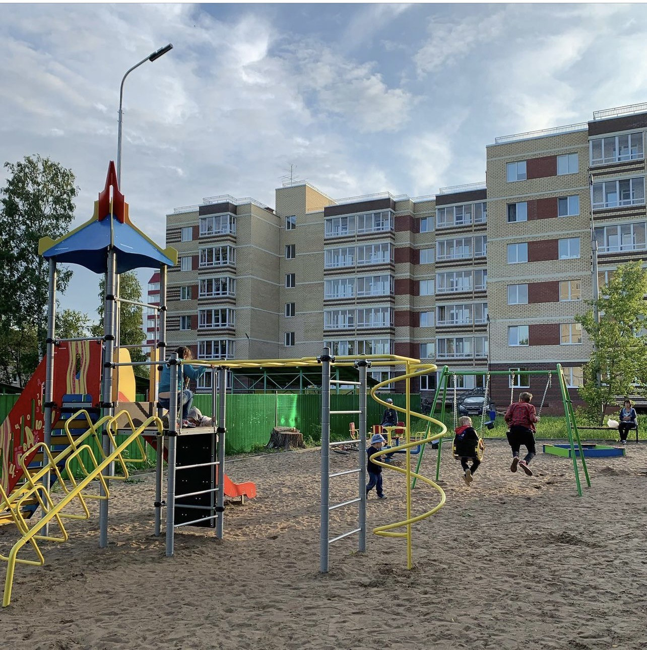 Территория дома огорожена, имеется Детская площадка, парковка.