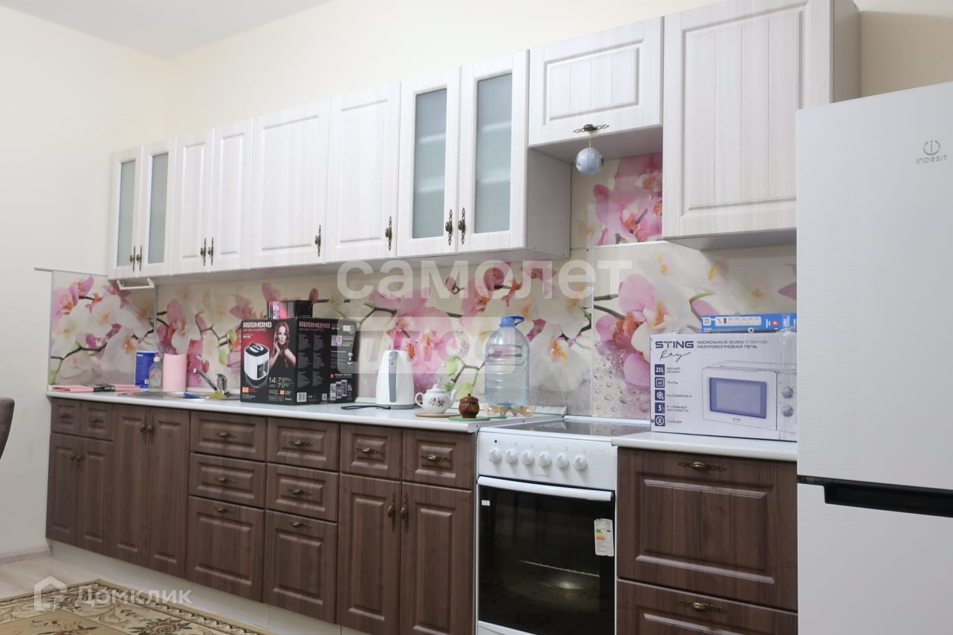 В квартире: мебель (2 раскладных дивана, кресло, шкаф, мебельная горка с тумбой и полками, журнальный столик, телевизор, кухонный гарнитур, стол, стулья, электроплита, холодильник, эл. чайник, мультиварка, микроволновка, посуда, стиральная машина, утюг, гладилка.