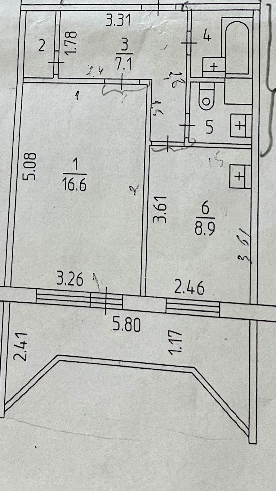 Балкон, лоджия 1 балкон