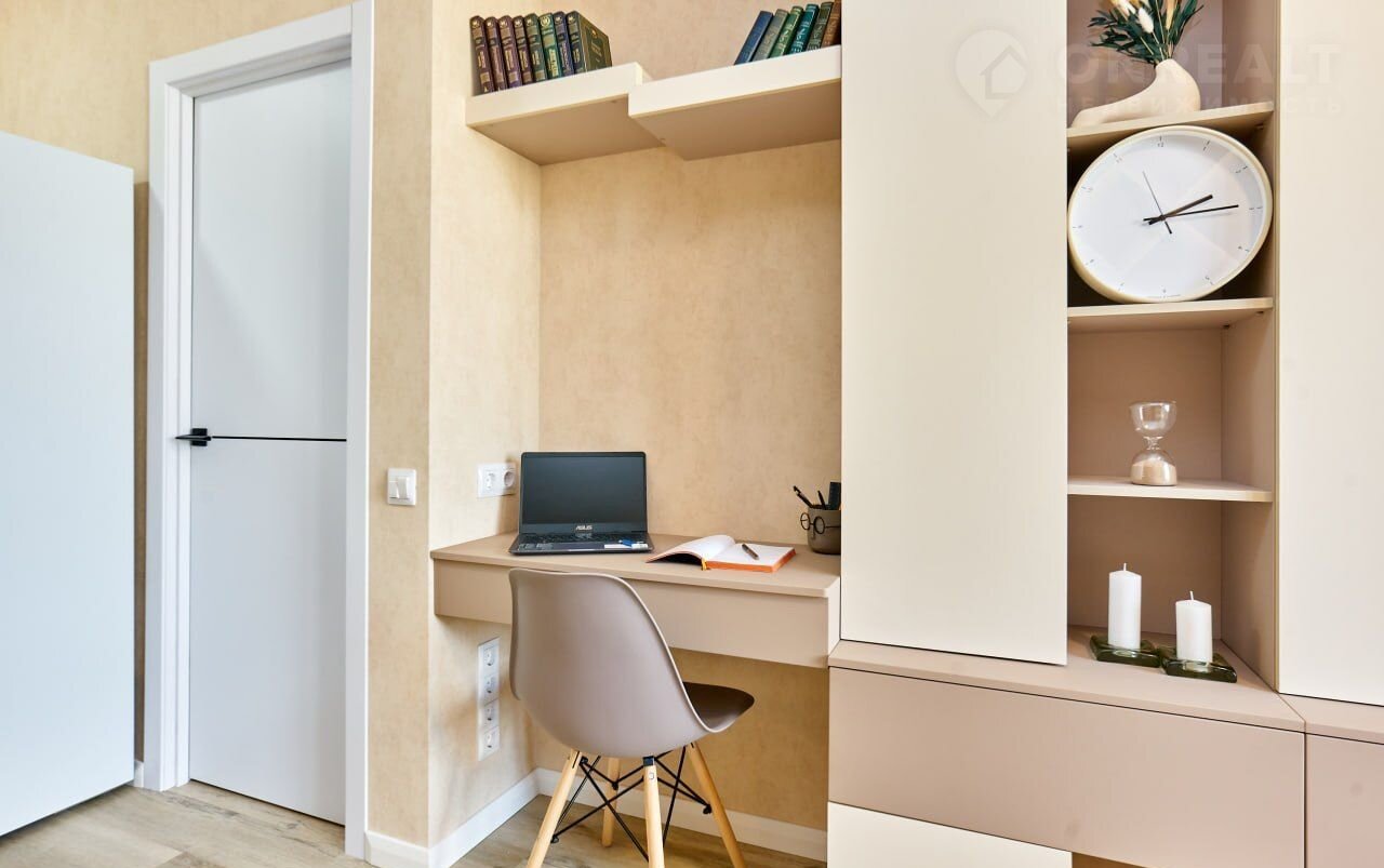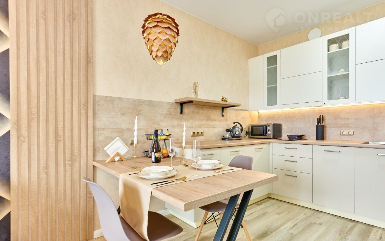 В квартире выполнен хоумстейджинг в нейтральных тонах: использованы стильные аксессуары и текстуры. Все детали интерьера были продуманы с акцентом на комфорт и практичность. Освещение в квартире создает мягкую, приятную атмосферу в любое время суток. Каждый уголок квартиры наполнен вниманием к деталям, что позволяет легко представить себя в этом пространстве: усиленная шумоизоляция, комфортный температурный режим в каждой комнате, умные счётчики, мобильное приложение NОVА соmfоrt для управления своим домом.