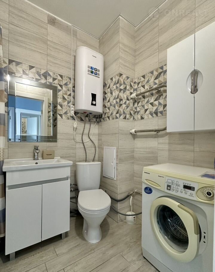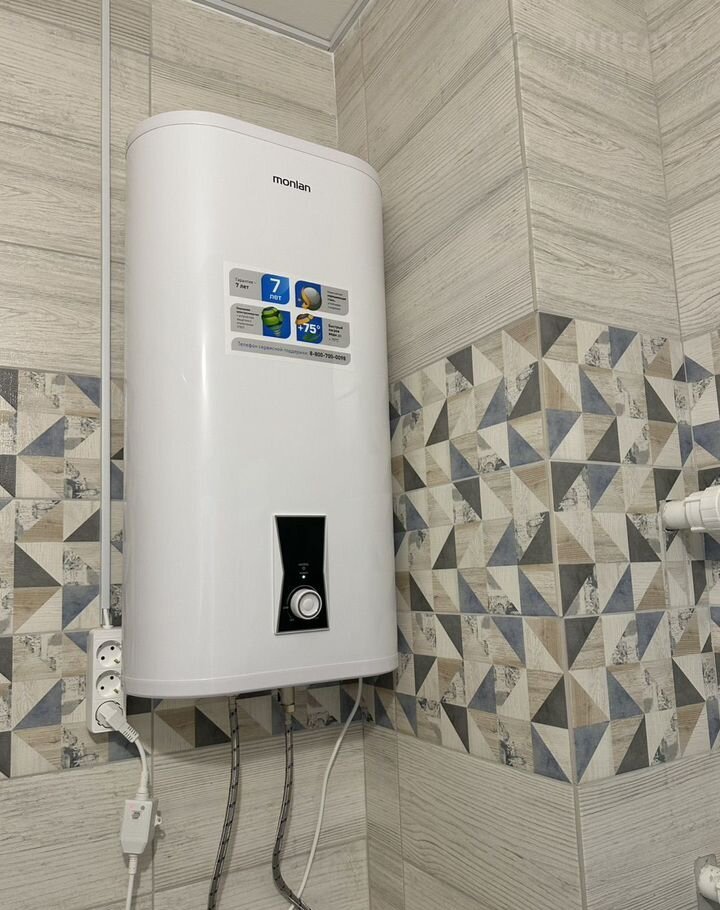 Полностью оборудована мебелью и бытовой техникой- установлен кухонный гарнитур, электрическая плита, холодильник, микроволновая печь, обеденный стол со стульями, диван, двуспальная кровать, система хранения в гардеробной, шкаф-купе в коридоре, телевизор, стиральная машина, водонагреватель.