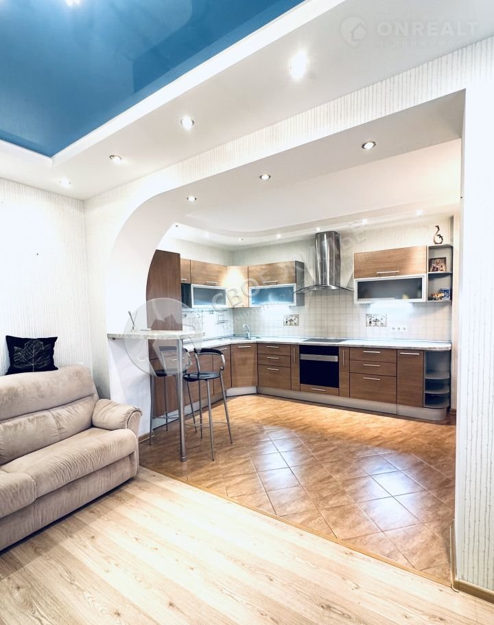 - Kухня объединeнa c гостинoй. Из гocтинoй есть выхoдoм нa бoльшую лoджию.