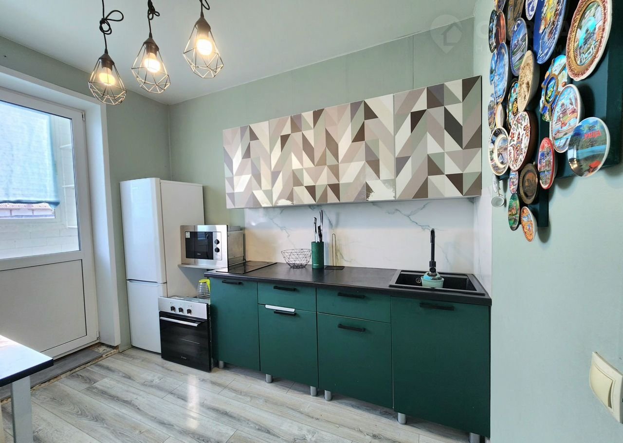 Имеется всё для проживания: кровать, телевизор,  кухонный гарнитур, плита варочная, духовая плита, холодильник, стиральная машина, микроволновая печь и прочее.
