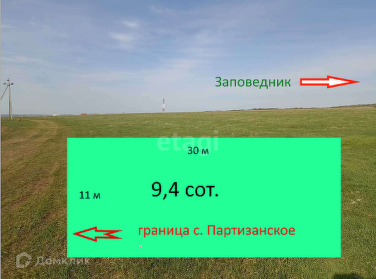 Земельный участок в с. Партизанское. Участок правильной формы - новая нарезка, но очень близко с строениям со всеми коммуникациями. Площадь участка 9,5 соток. Границы участка уточнены.