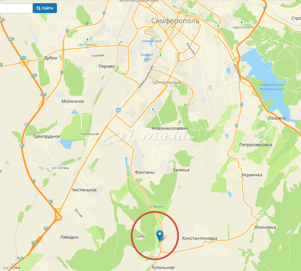 Массив расположен в 6 км. от Симферополя по  асфальтированной дороге.