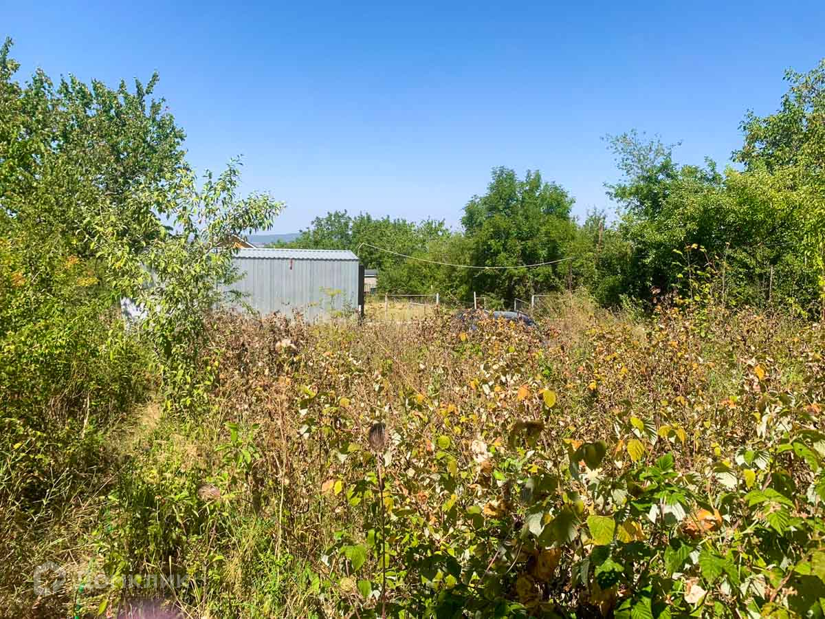 На участке есть небольшой вагончик. Есть много плодовых деревьев.