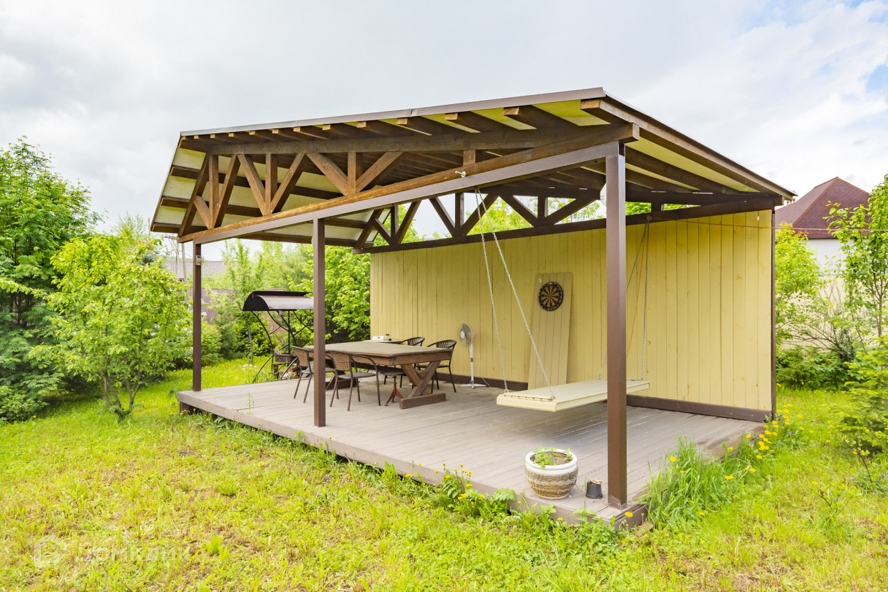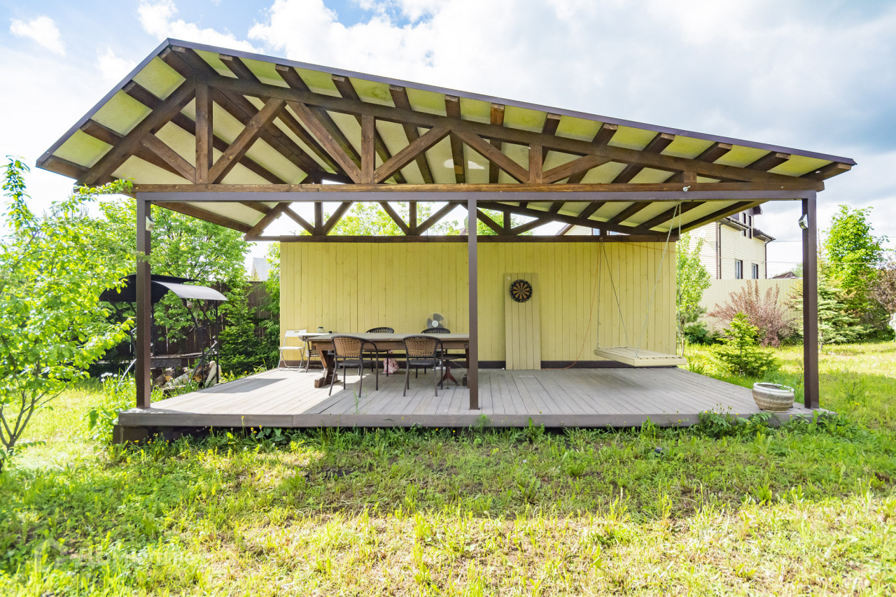 Жилой дом 211 м2, материал стен кирпич. Первый этаж: кухня гостиная, закрытая веранда, гостевая комната, гардероб, прихожая, сан узел, техническое помещение. Второй этаж: три спальные комнаты, два сан узла.