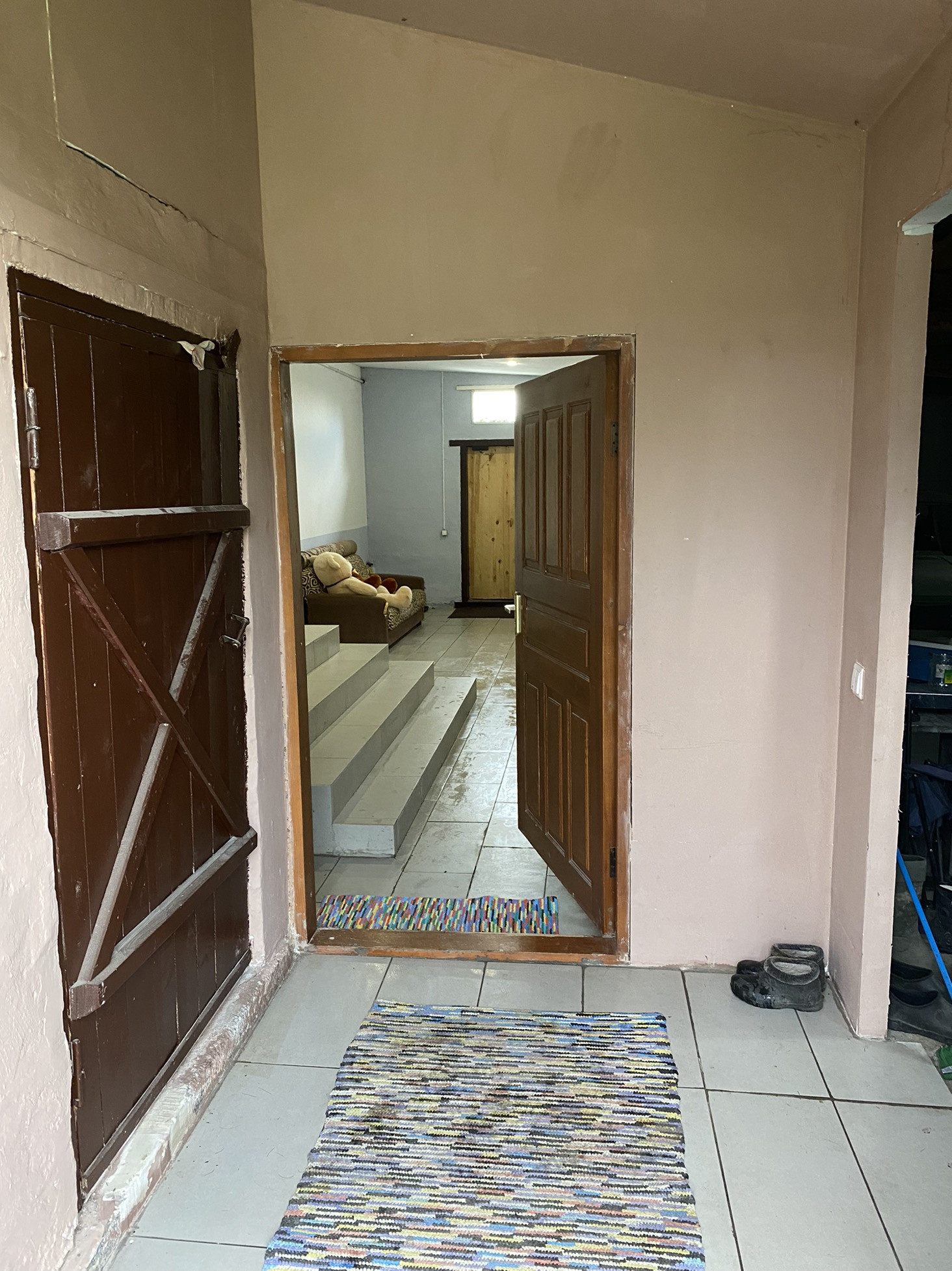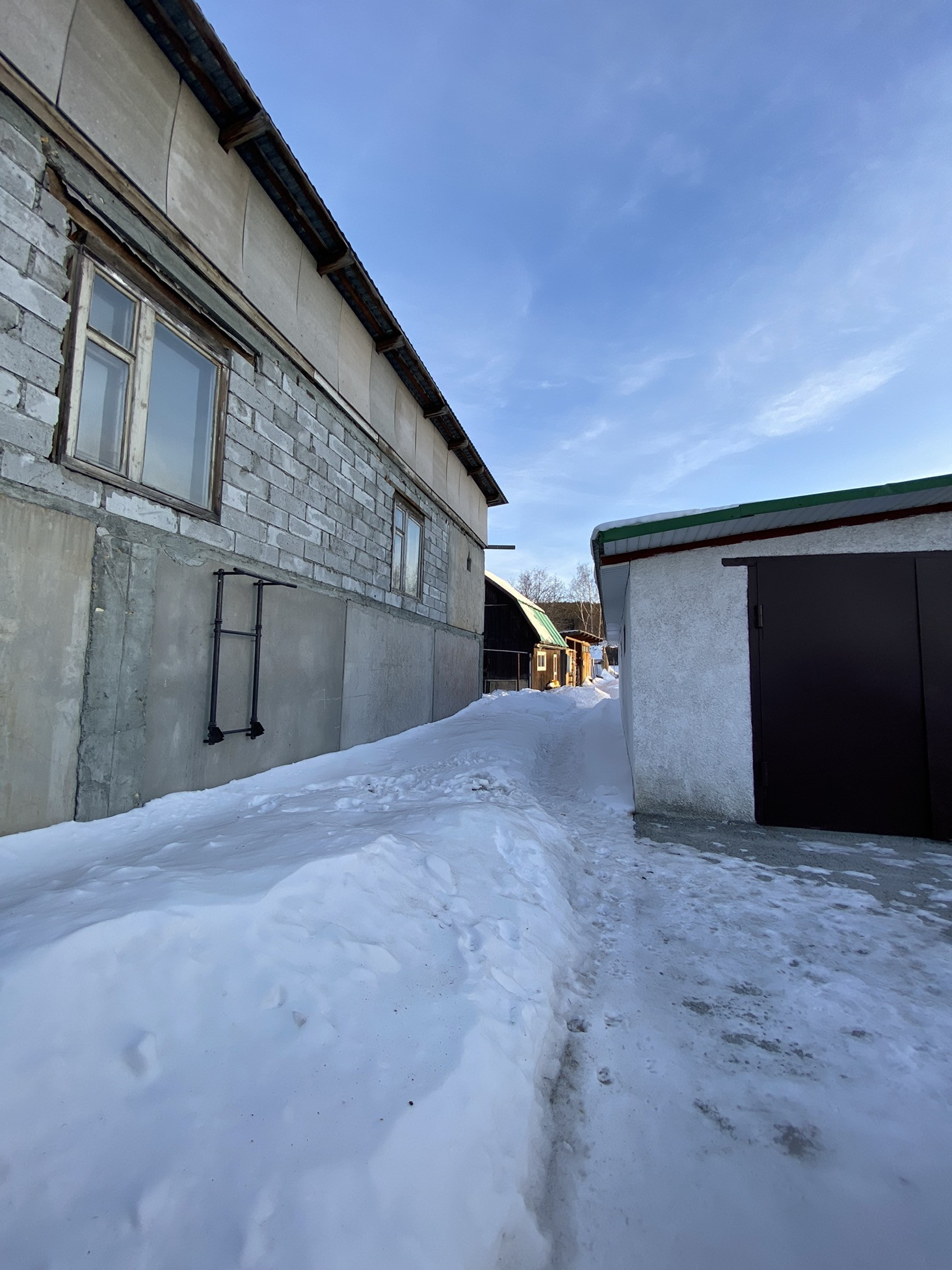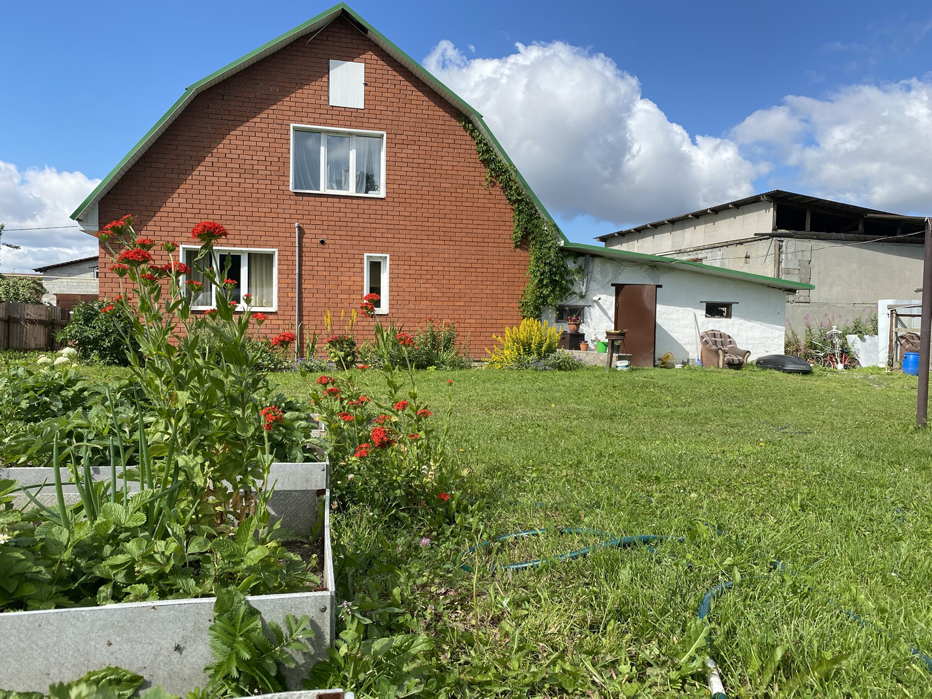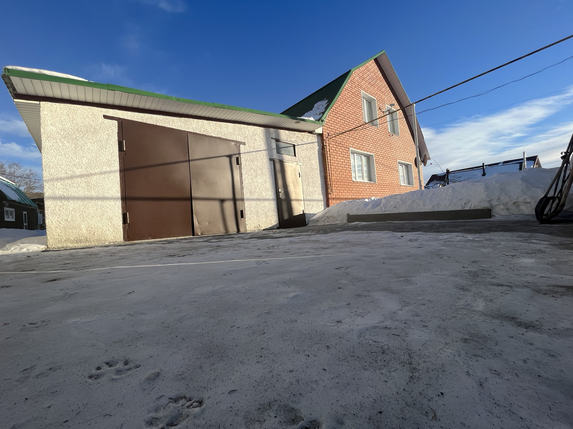 На участке отдельно стоящий гаражный бокс для грузового автомобиля в собственности 85 кв.м, при ненадобности можно переделать в отдельный дом .