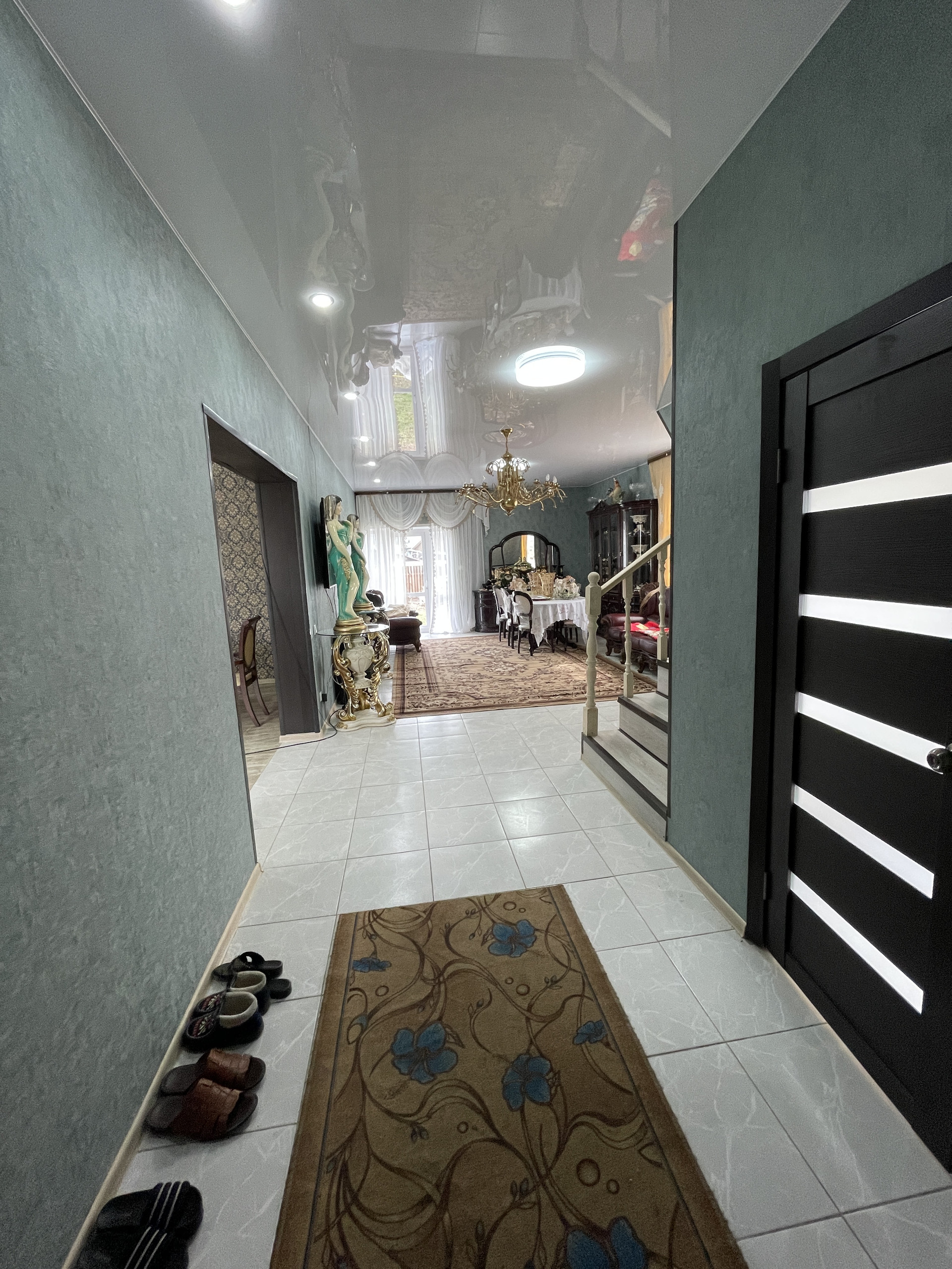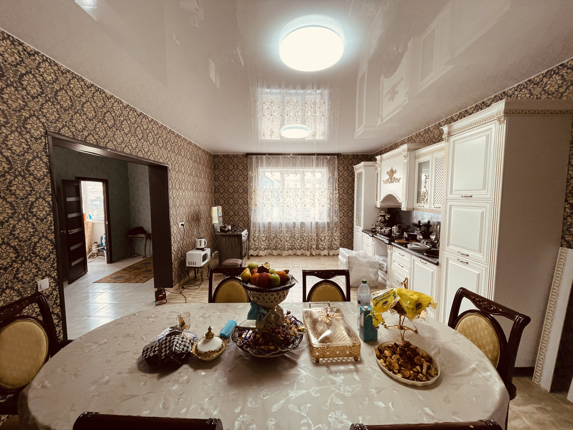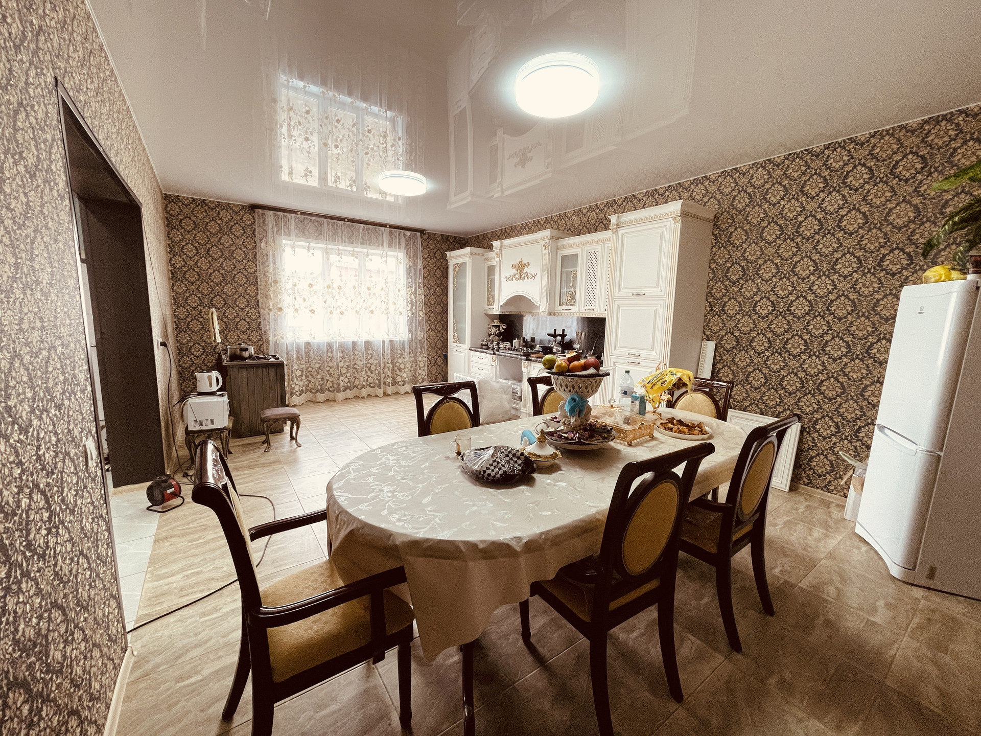 Внутренняя отделка – штукатурка, обои на стенах, натяжные потолки.