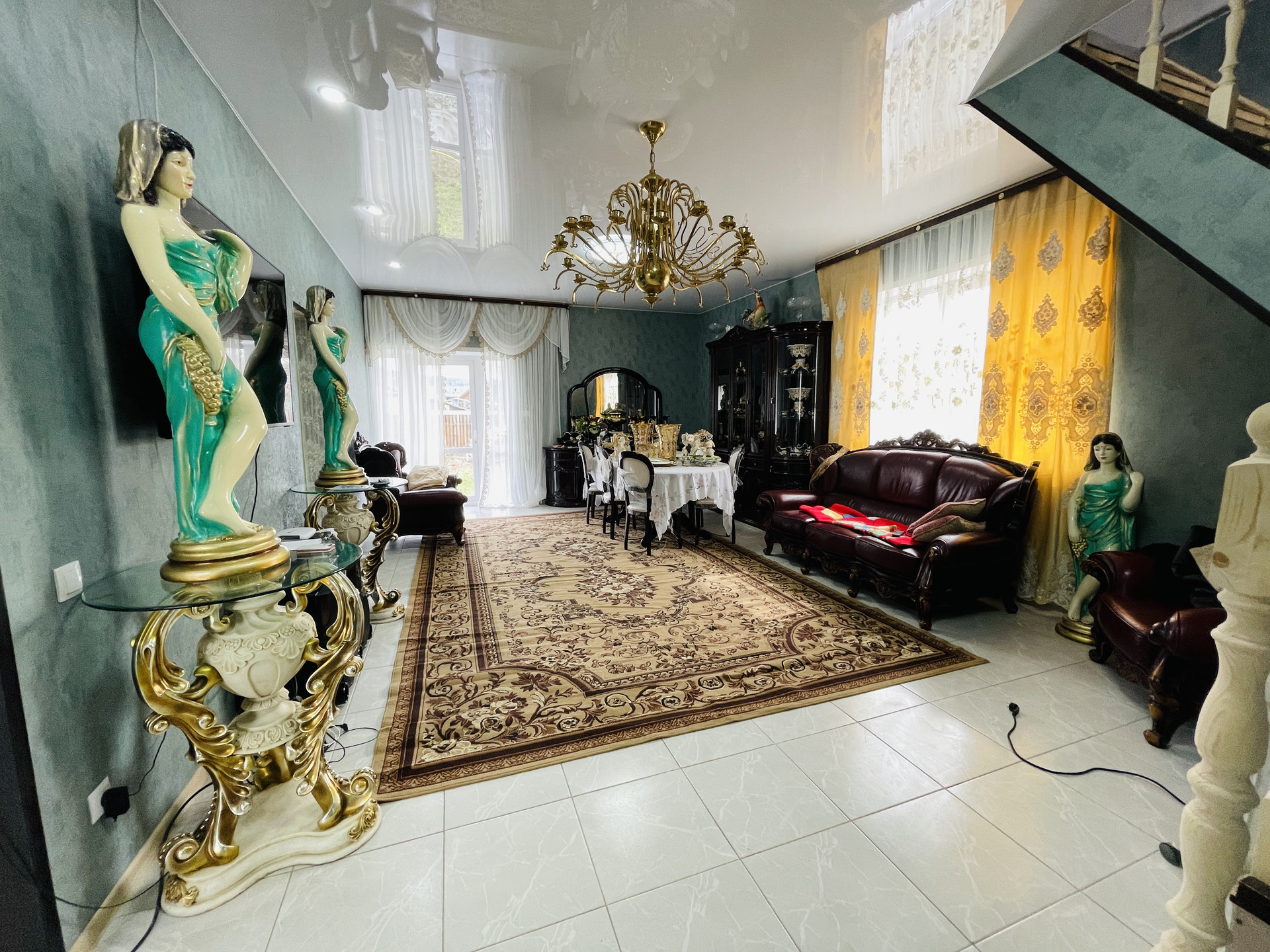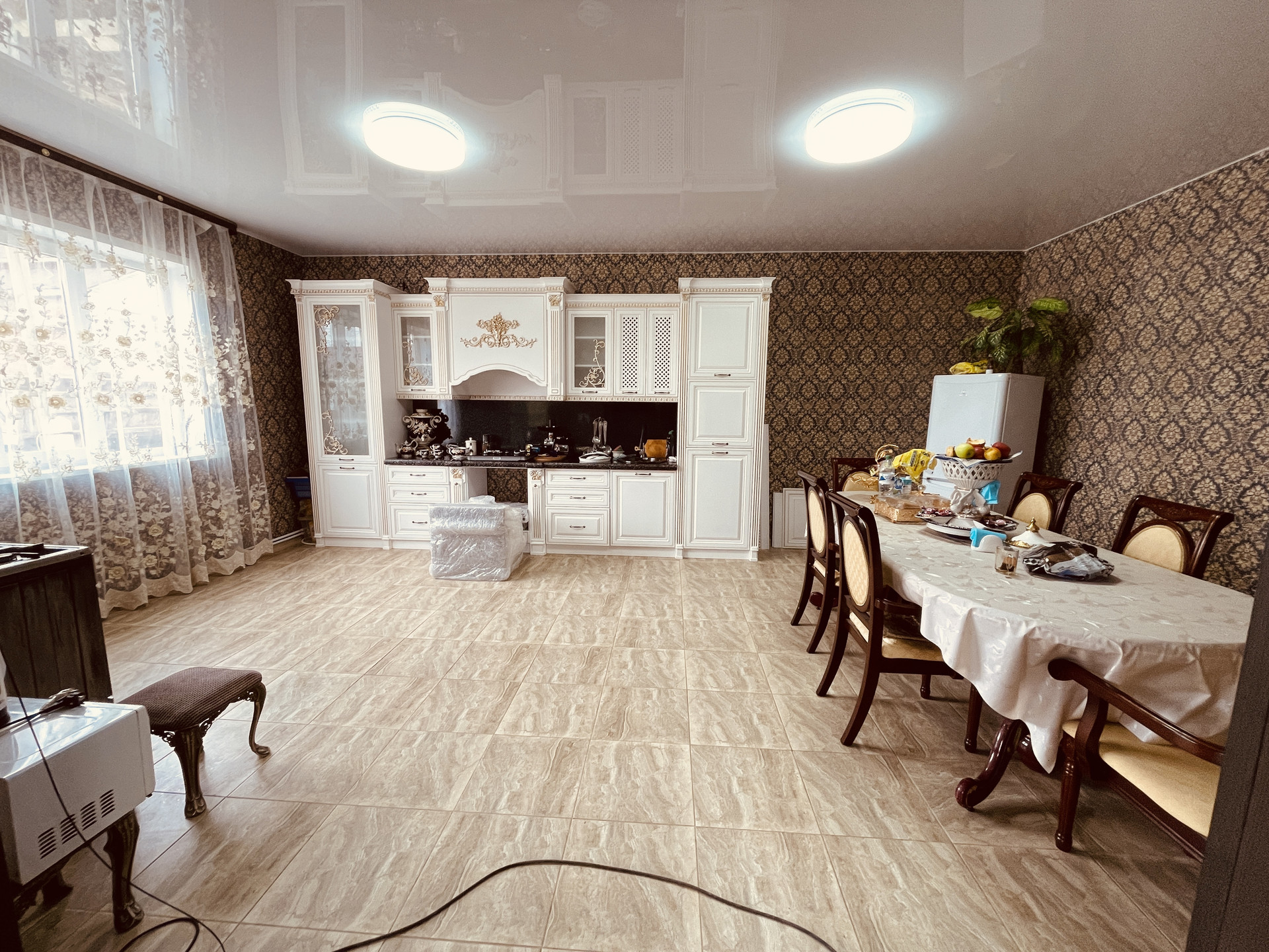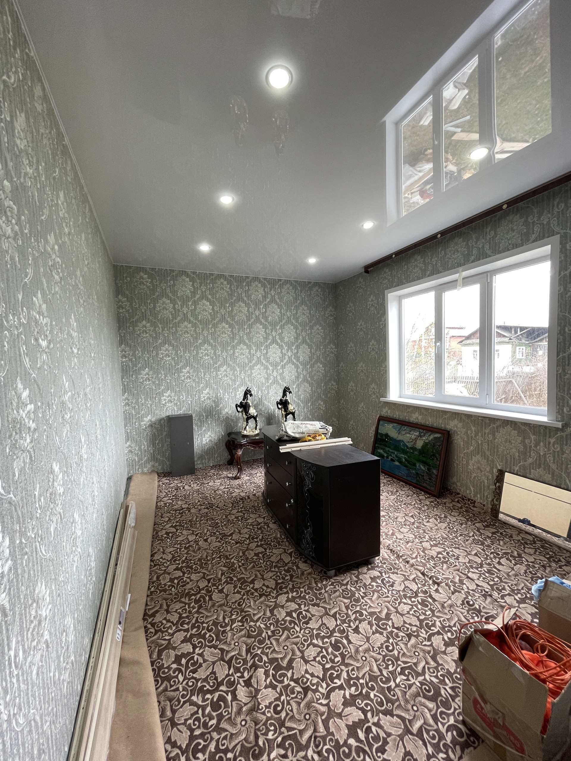 Внутренняя отделка – штукатурка, обои на стенах, натяжные потолки.