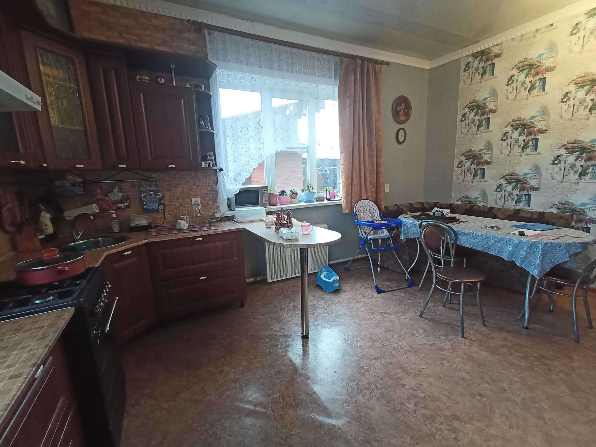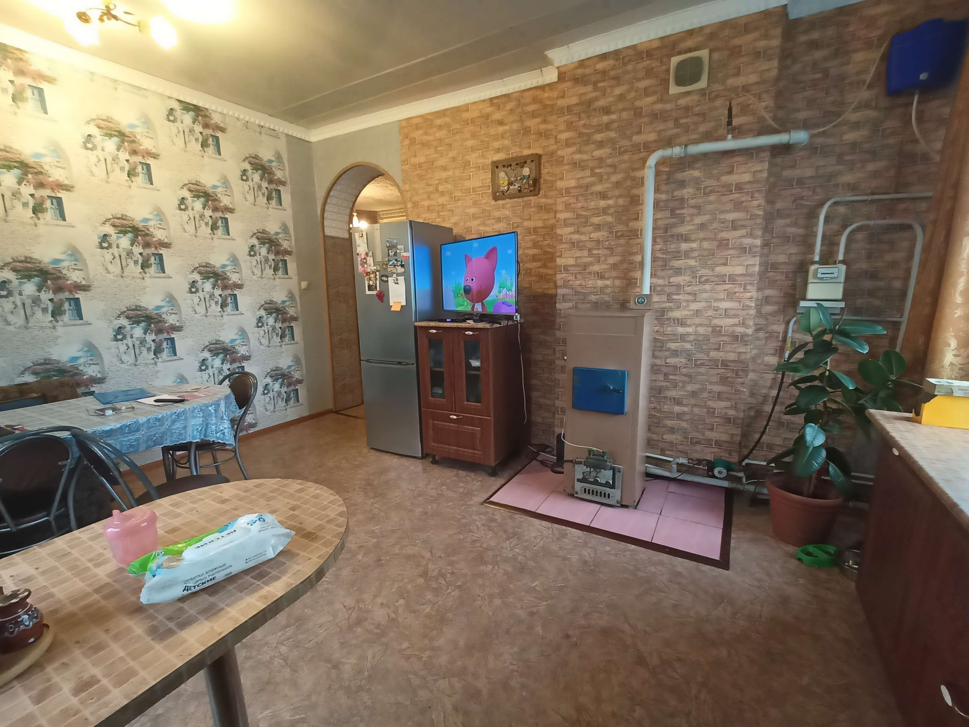 Дом полностью благоустроенный: водопровод центральный, газовое отопление - радиаторы по дому, канализация - шамбо.