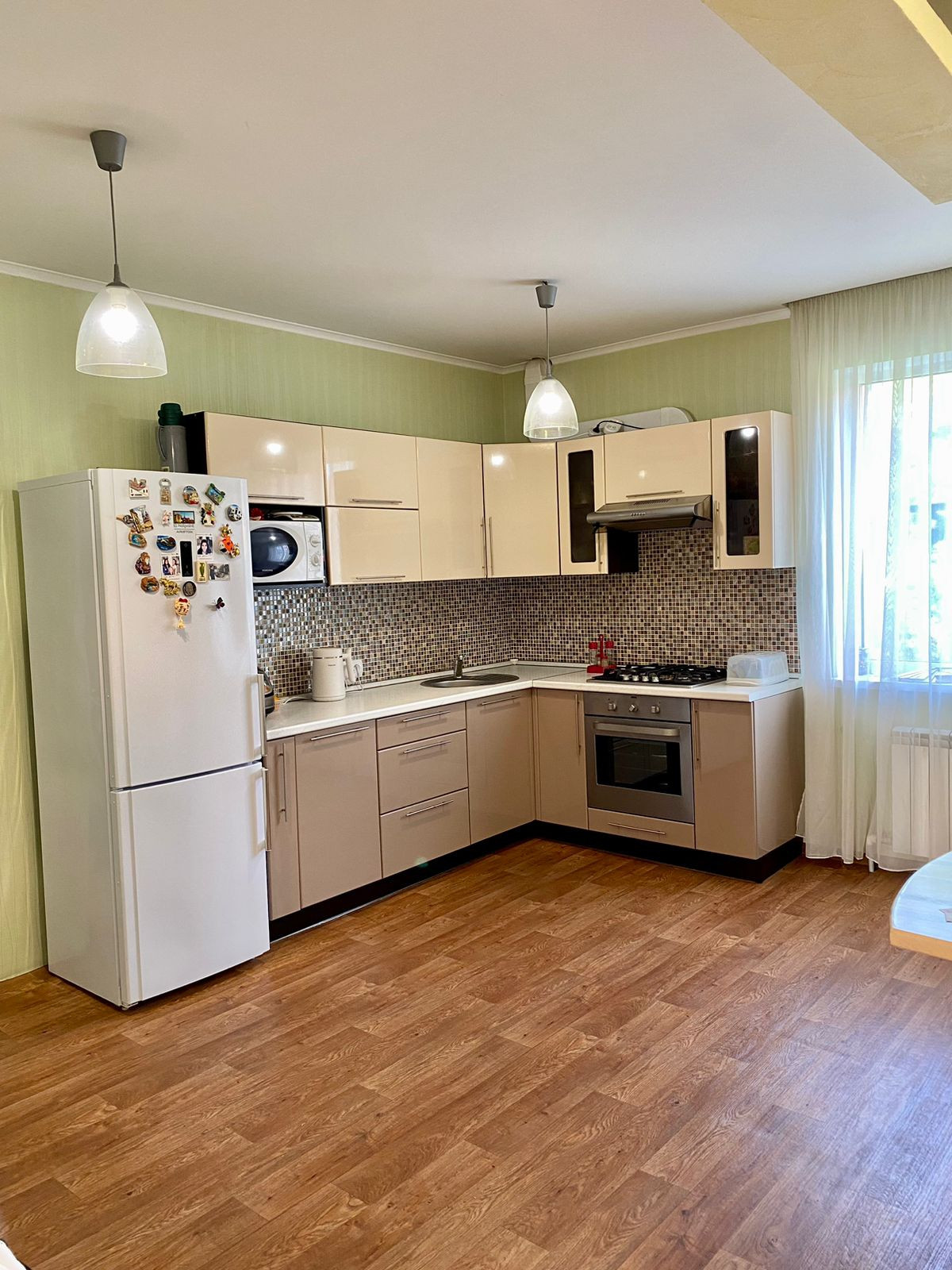 На кухне встроенный очень удобный кухонный гарнитур и вся встроенная техника останутся новым владельцам в подарок, так же бонусом идёт вместительный шкаф купе в прихожей.